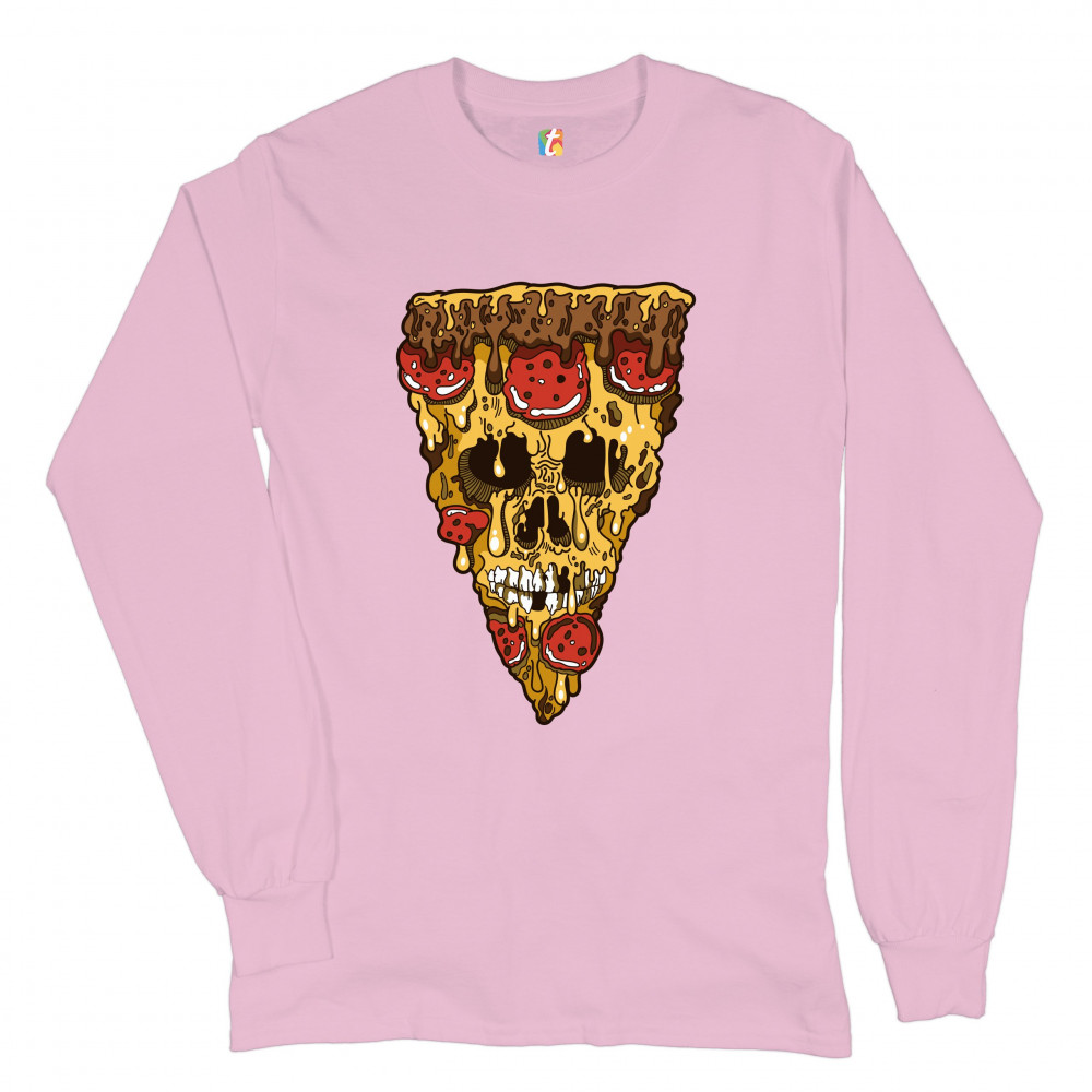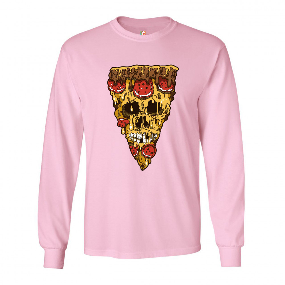 MELTING PIZZA ZOMBIE FACE long sleeve t-shirt horror halloween scary undead pink