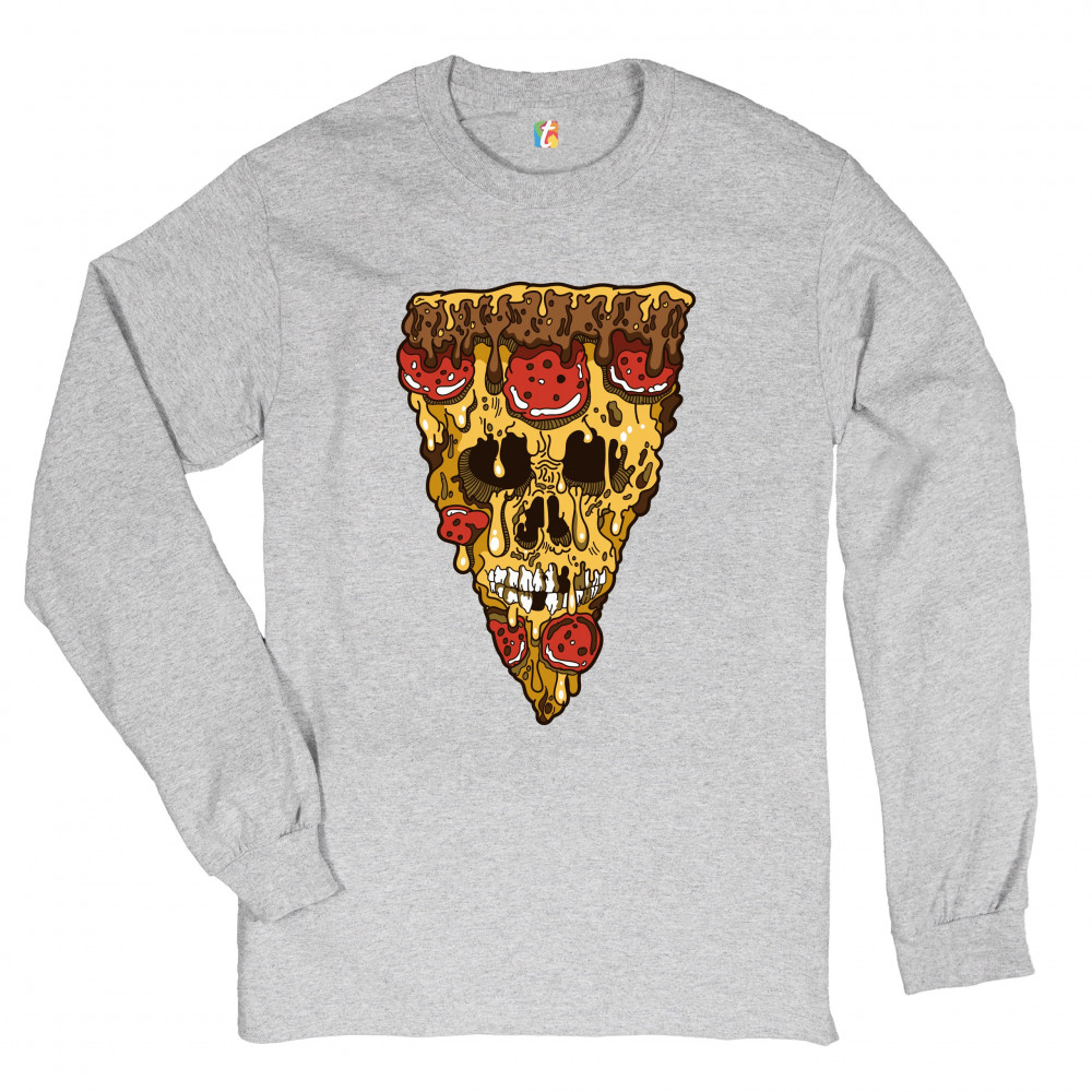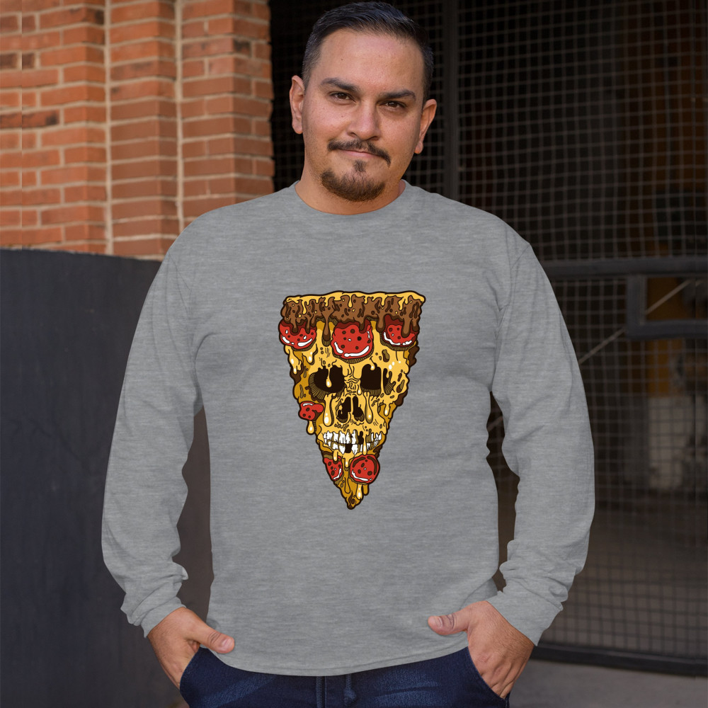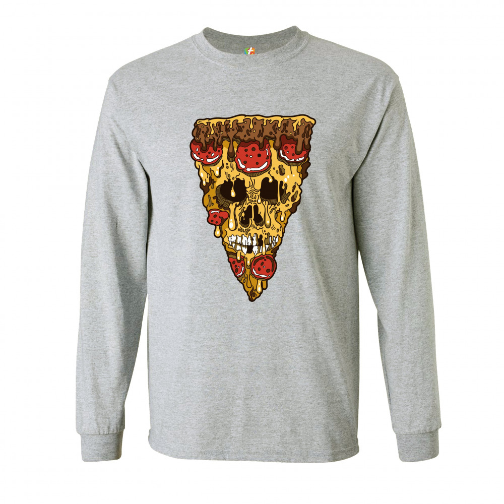 MELTING PIZZA ZOMBIE FACE long sleeve t-shirt horror halloween scary undead gray