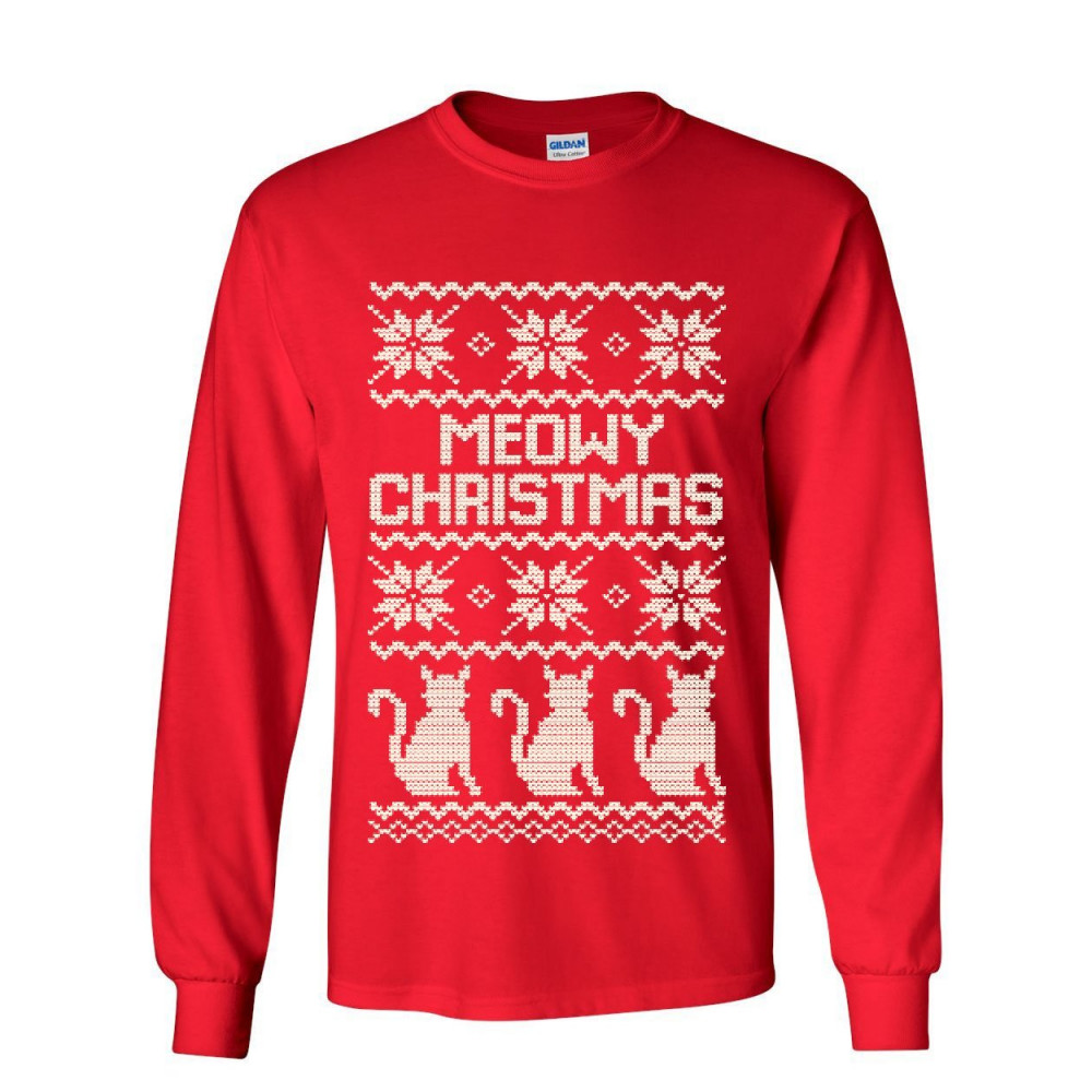 MEOWY CHRISTMAS long sleeve t-shirt cat christmas xmas ugly sweatshirt tee red