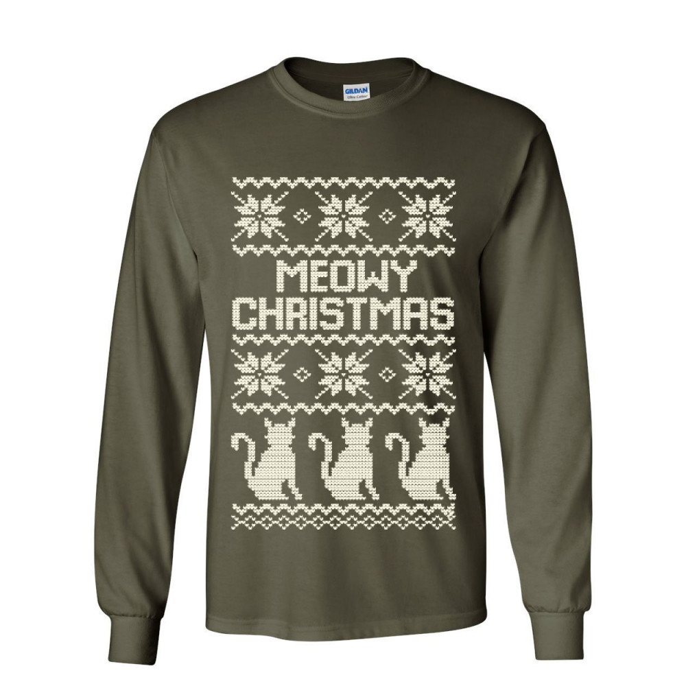 MEOWY CHRISTMAS long sleeve t-shirt cat christmas xmas ugly sweatshirt tee military green