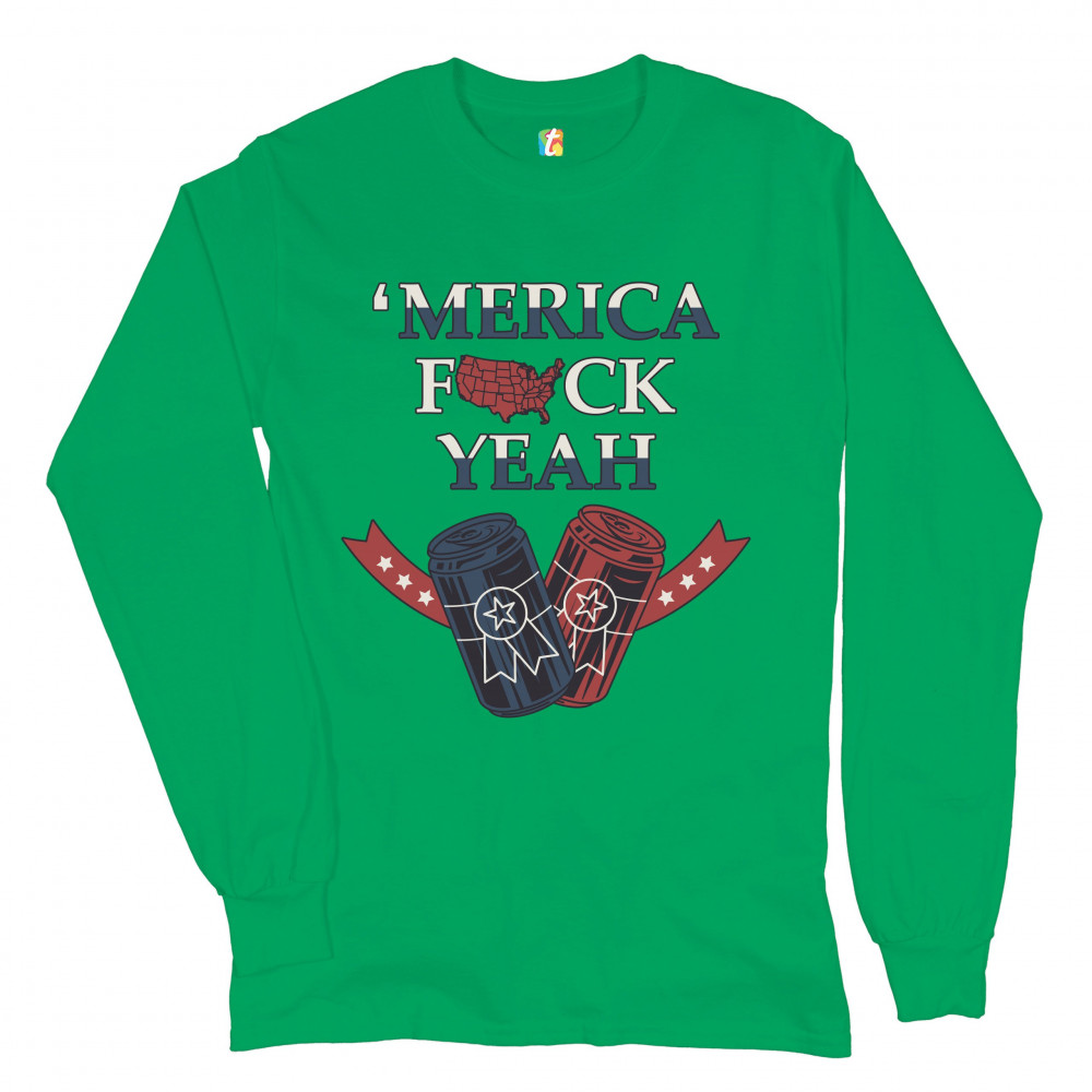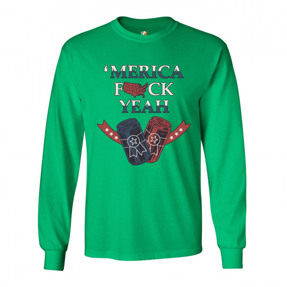 MERICA F*CK YEAH long sleeve t-shirt patriotic american pride drinking beer green