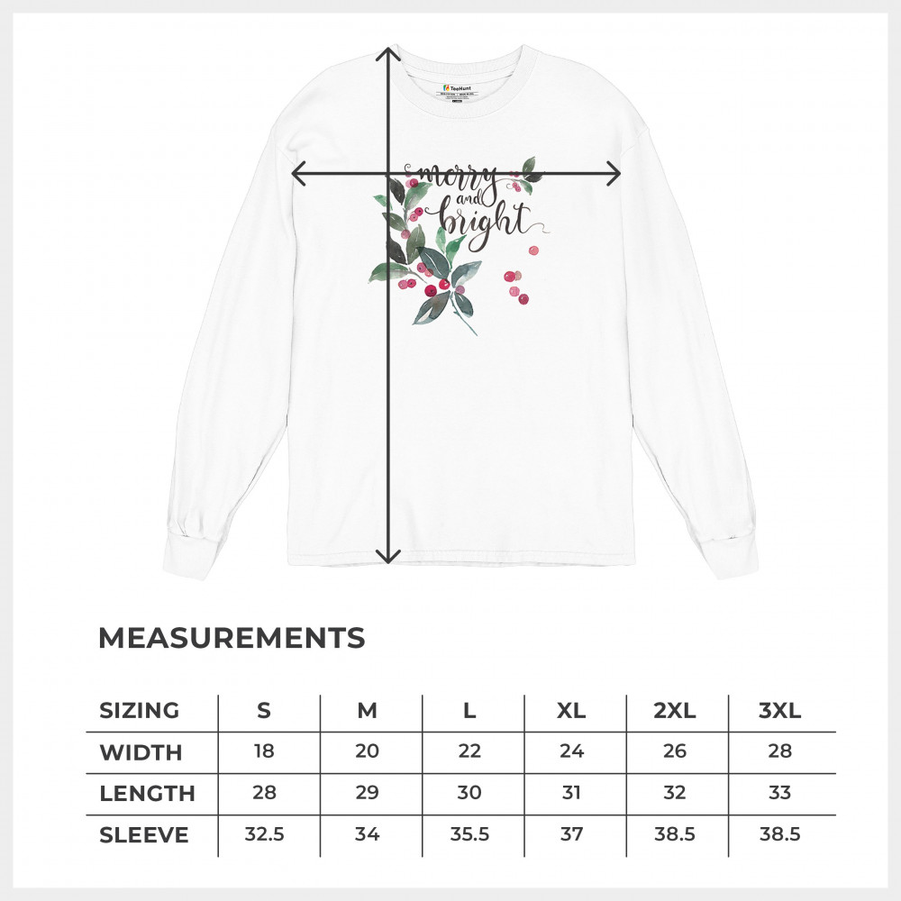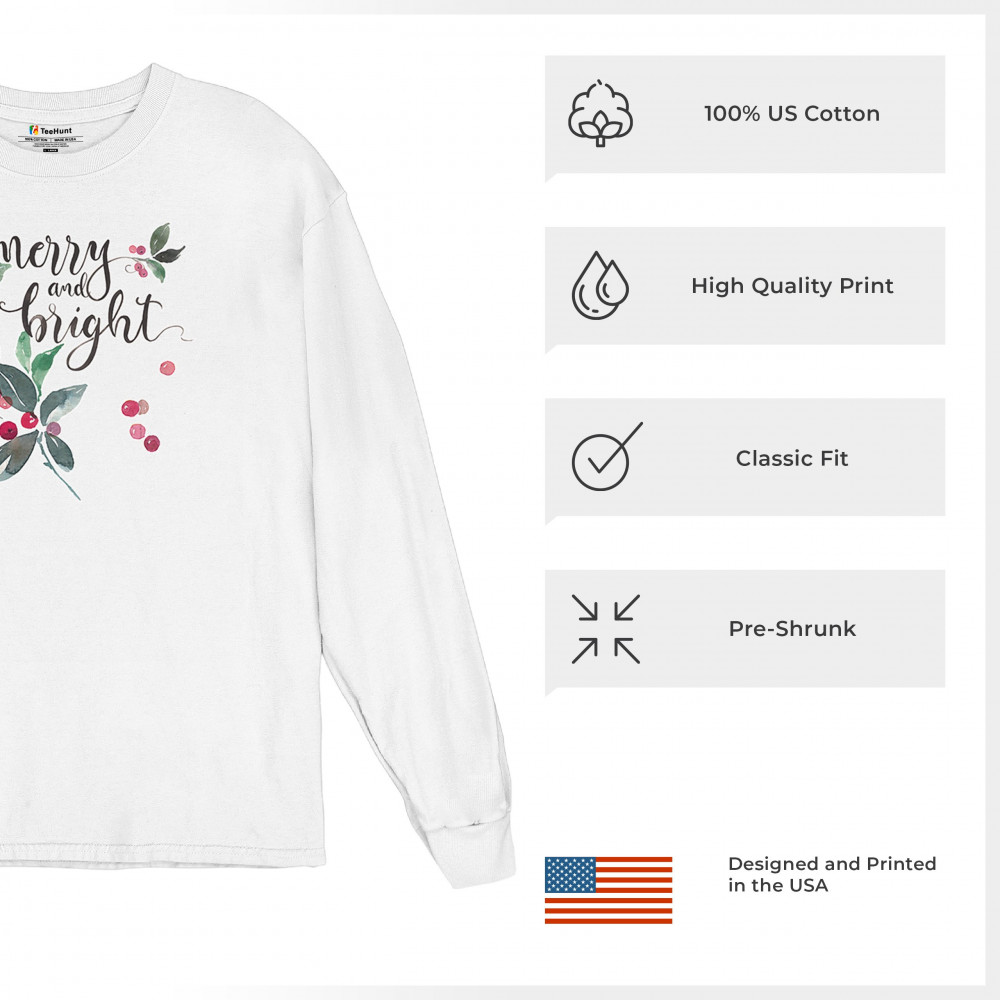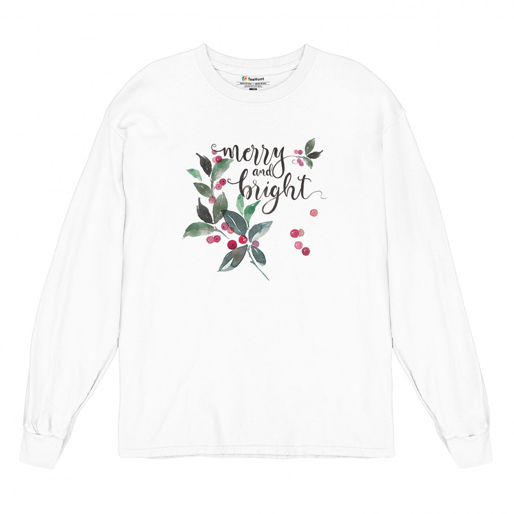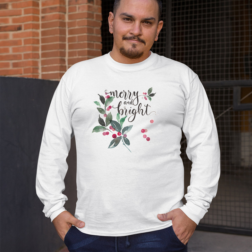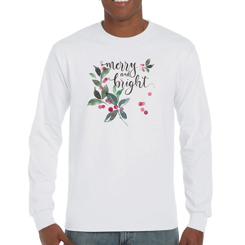 MERRY AND BRIGHT CUTE CHRISTMAS long sleeve t-shirt jolly santa clause xmas white