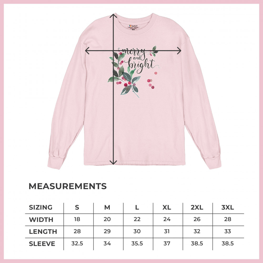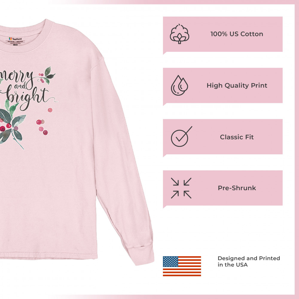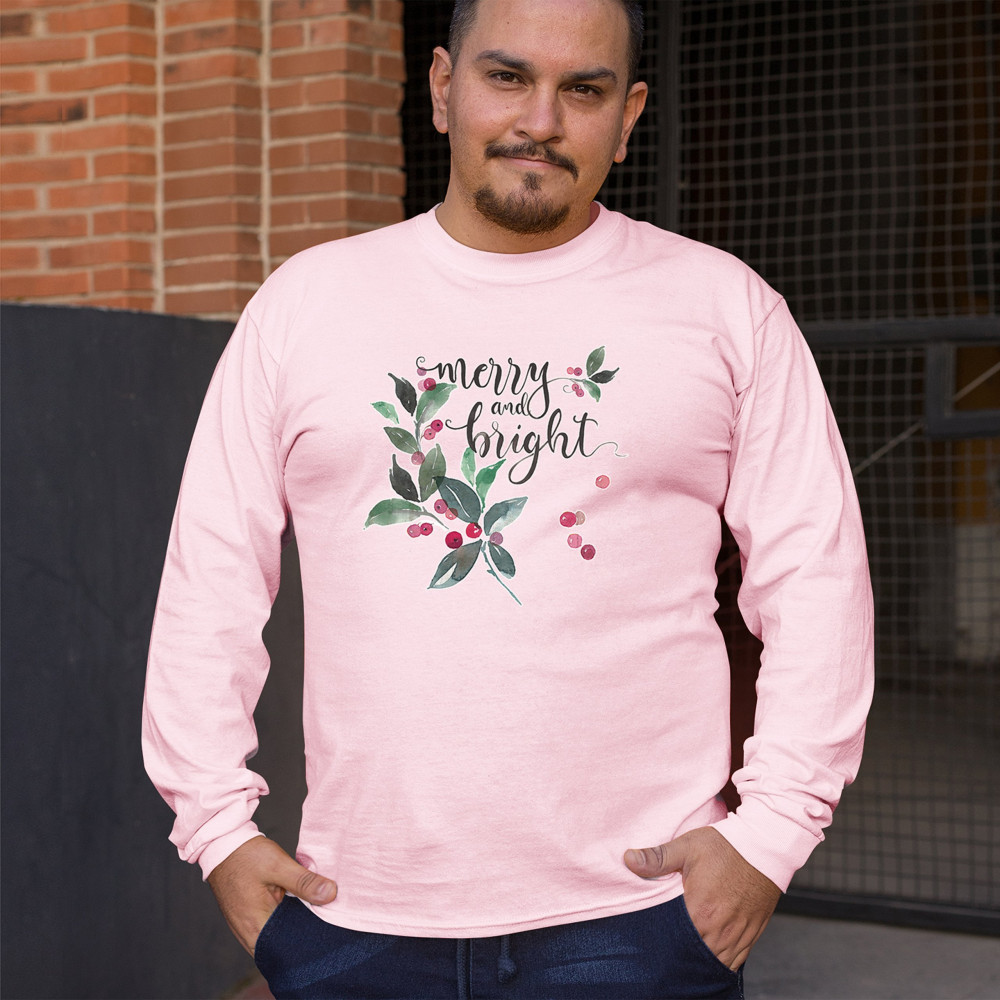 MERRY AND BRIGHT CUTE CHRISTMAS long sleeve t-shirt jolly santa clause xmas pink