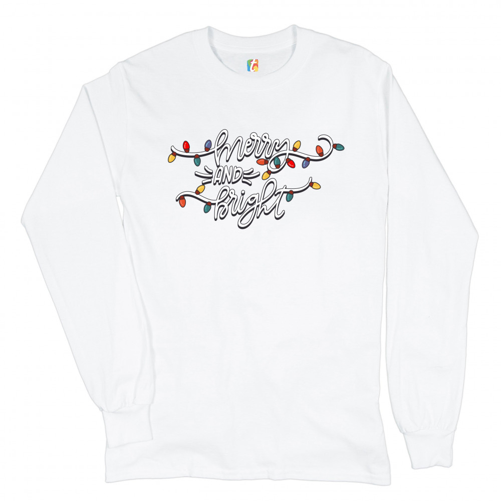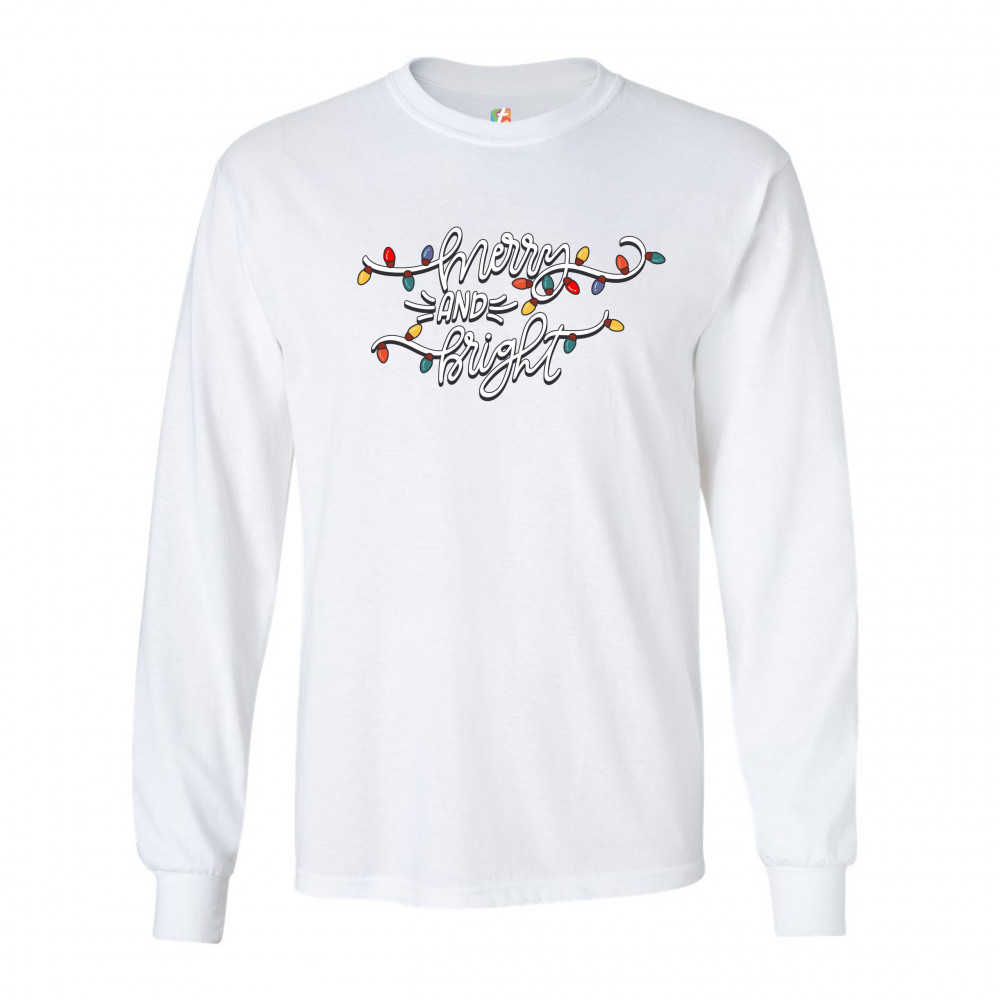 MERRY AND BRIGHT long sleeve t-shirt christmas eve holiday spirit festive white
