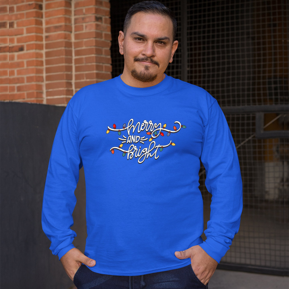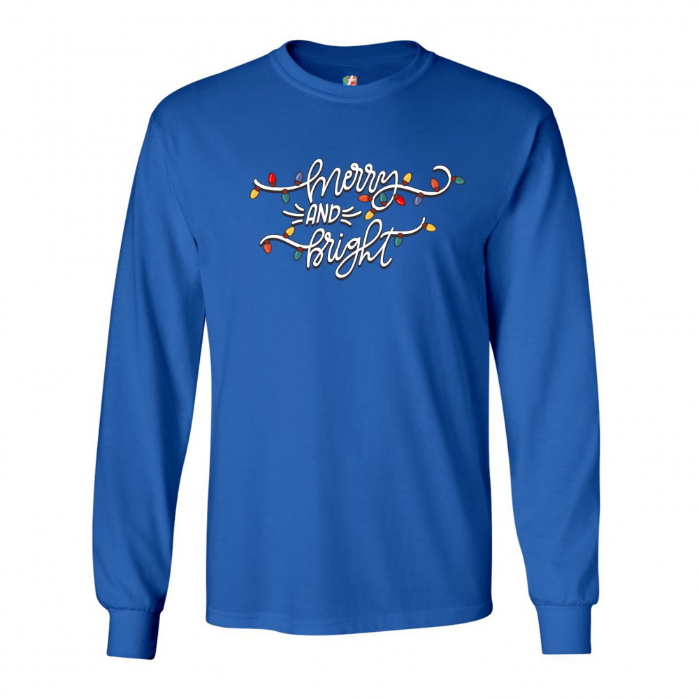 MERRY AND BRIGHT long sleeve t-shirt christmas eve holiday spirit festive royal blue