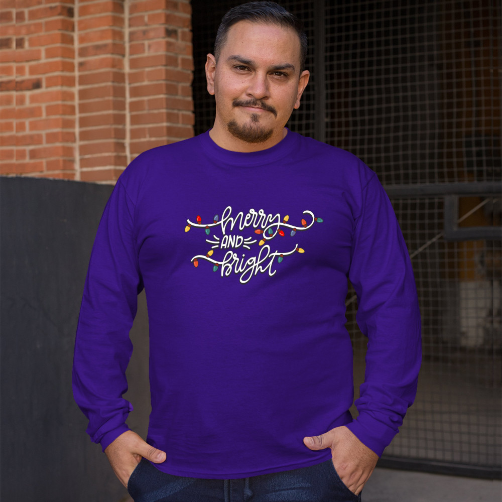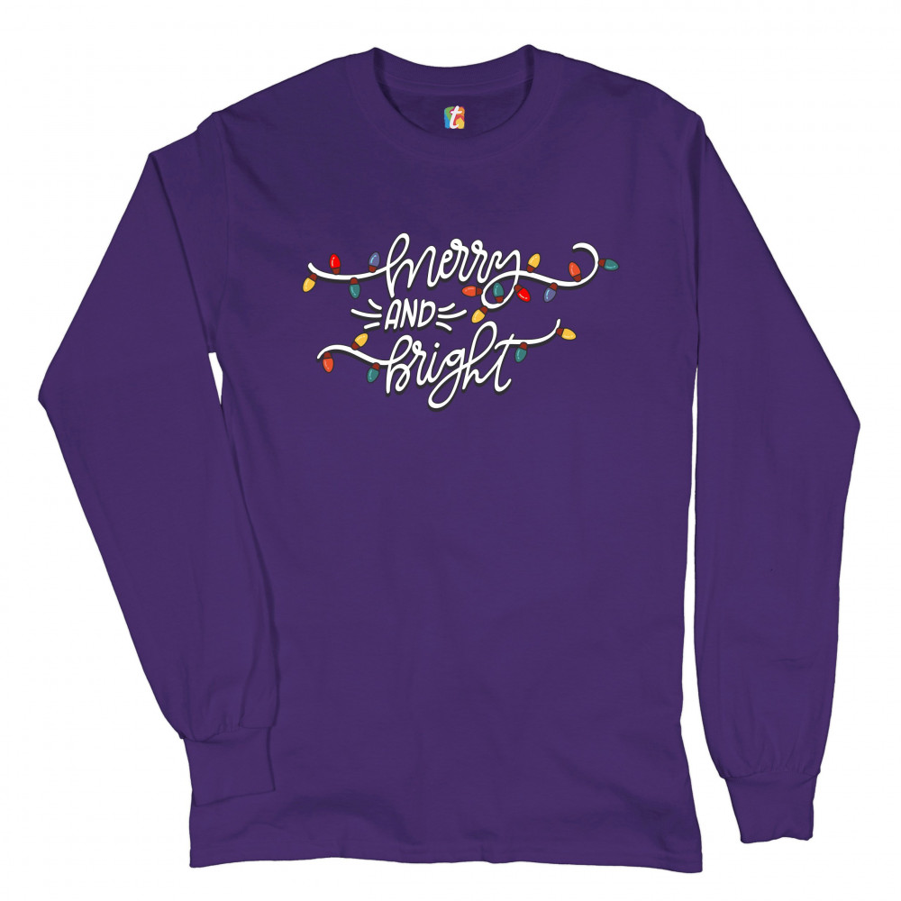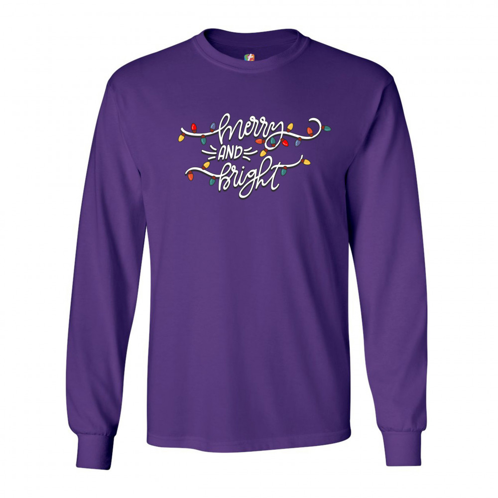 MERRY AND BRIGHT long sleeve t-shirt christmas eve holiday spirit festive purple