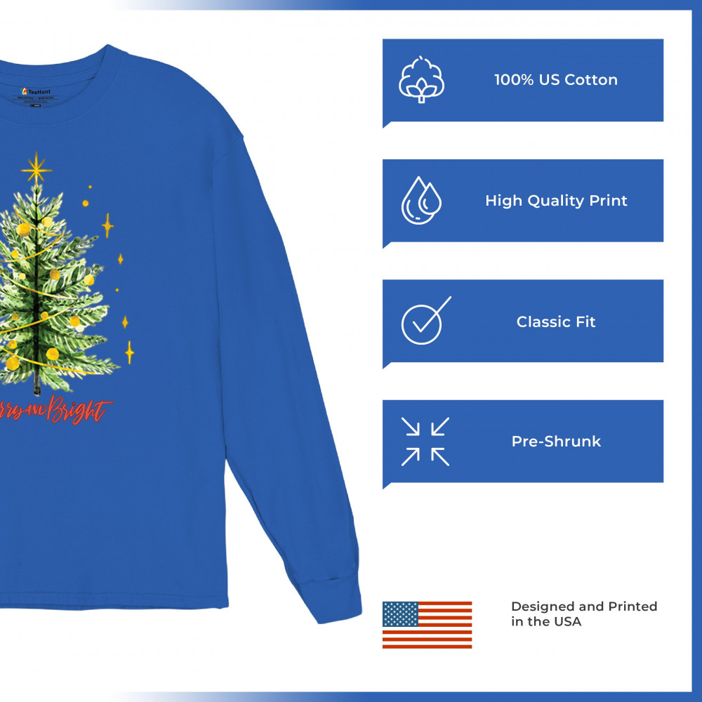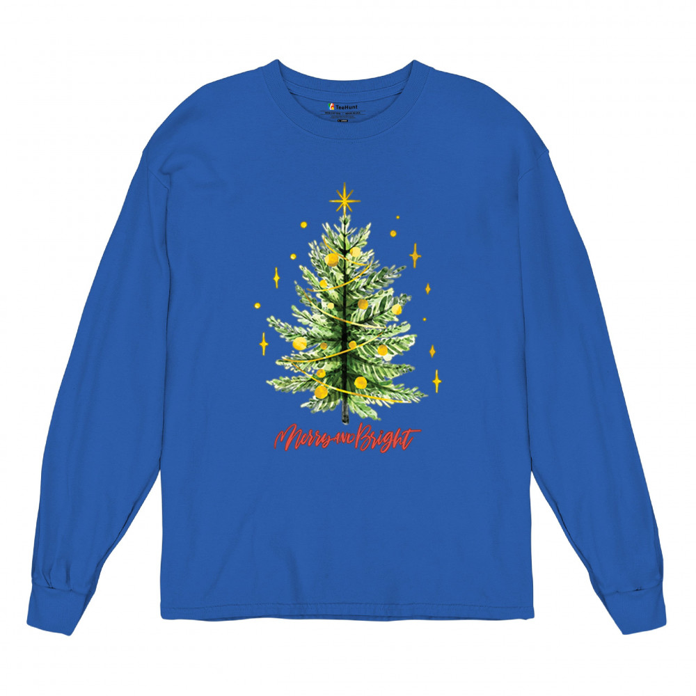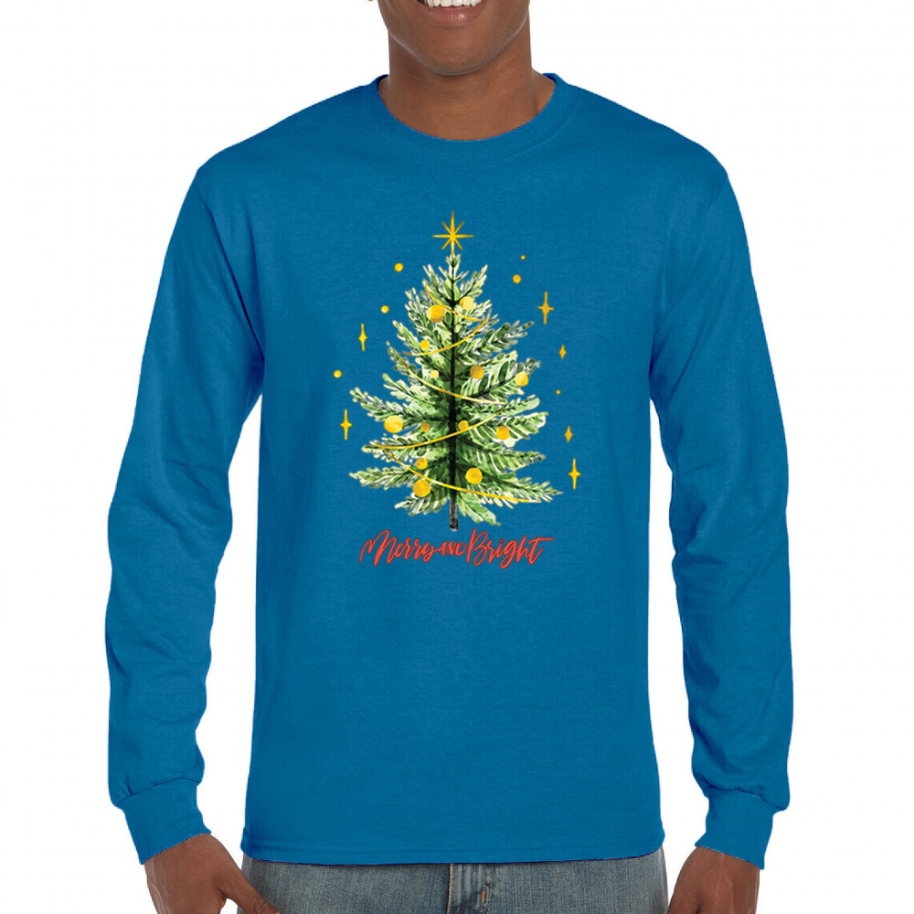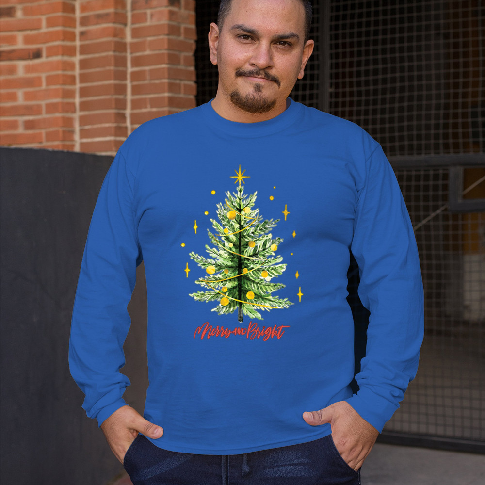 Festive “Merry and Bright†shirt featuring a joyful Christmas tree. Perfect for holiday gatherings, office parties, or Secret Santa gifts.