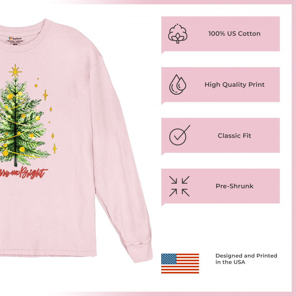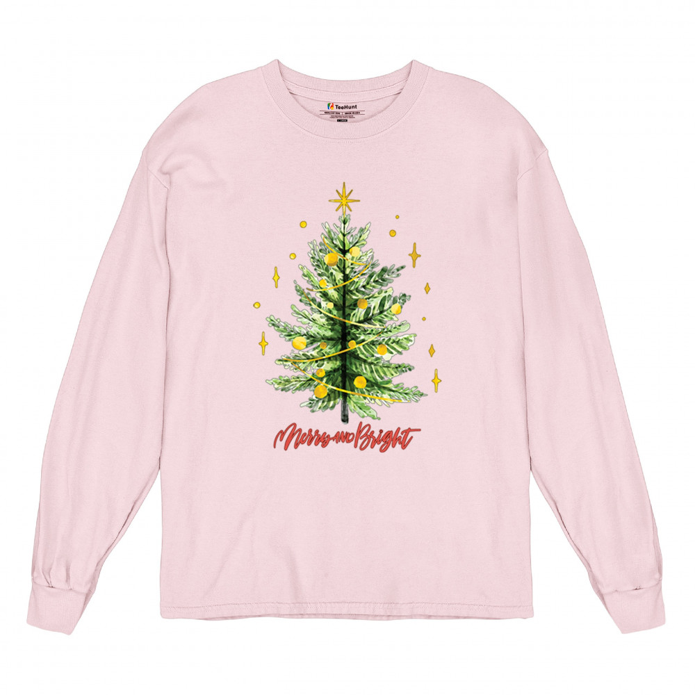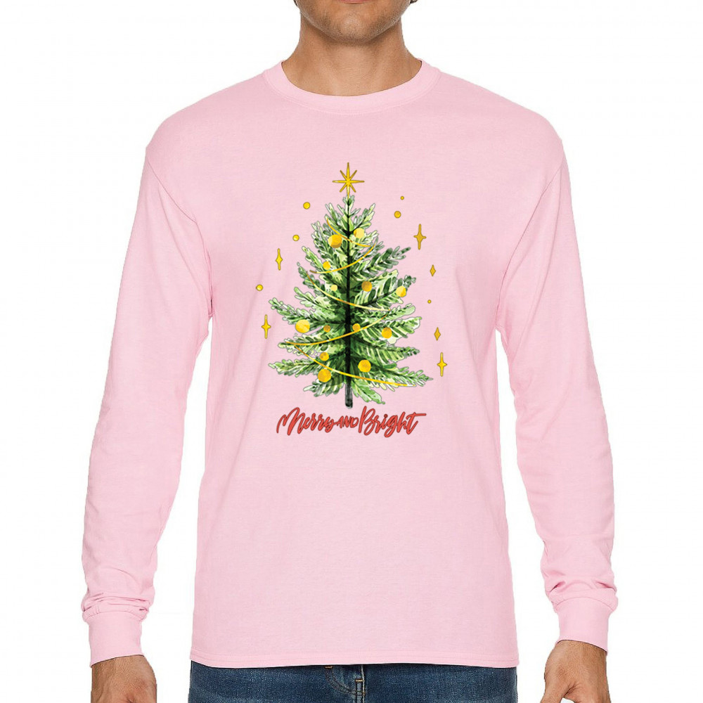 Festive “Merry and Bright†shirt featuring a joyful Christmas tree. Perfect for holiday gatherings, office parties, or Secret Santa gifts.