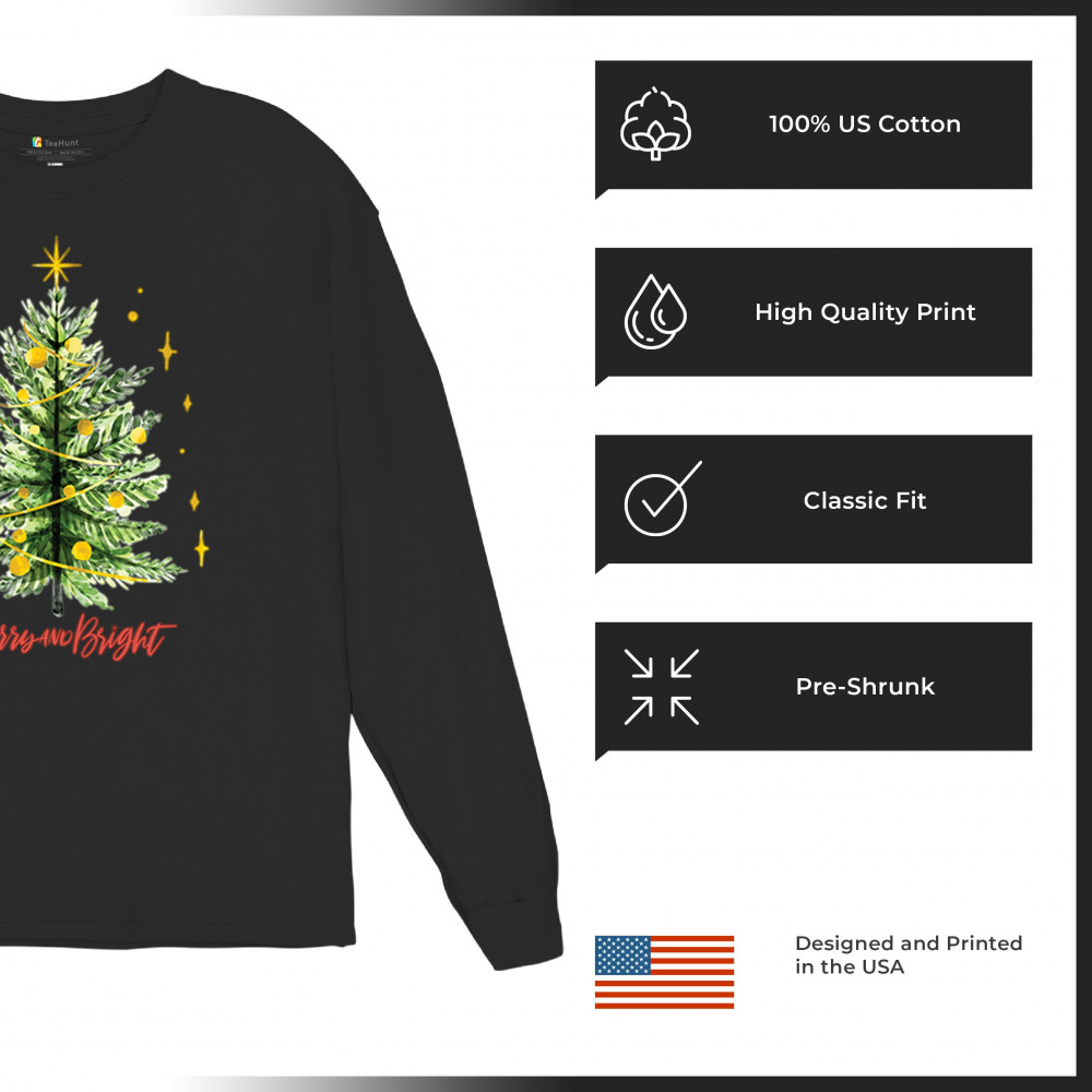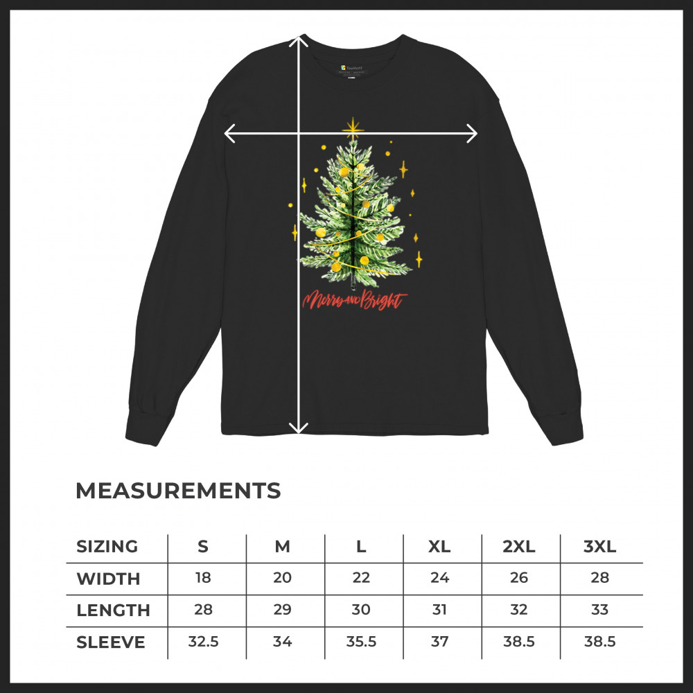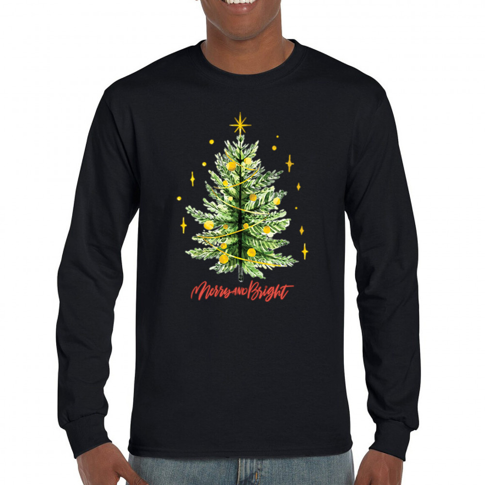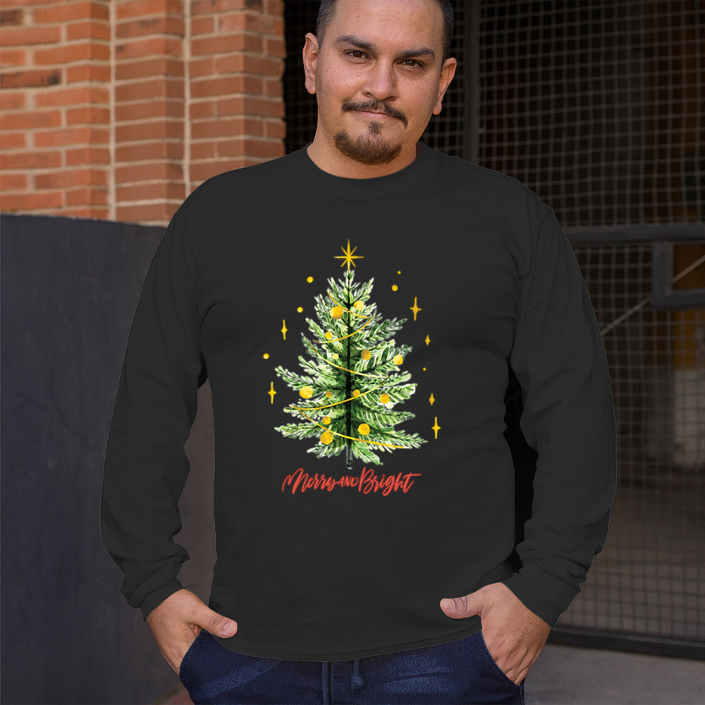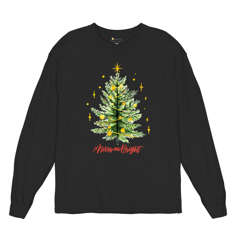 Festive “Merry and Bright†shirt featuring a joyful Christmas tree. Perfect for holiday gatherings, office parties, or Secret Santa gifts.