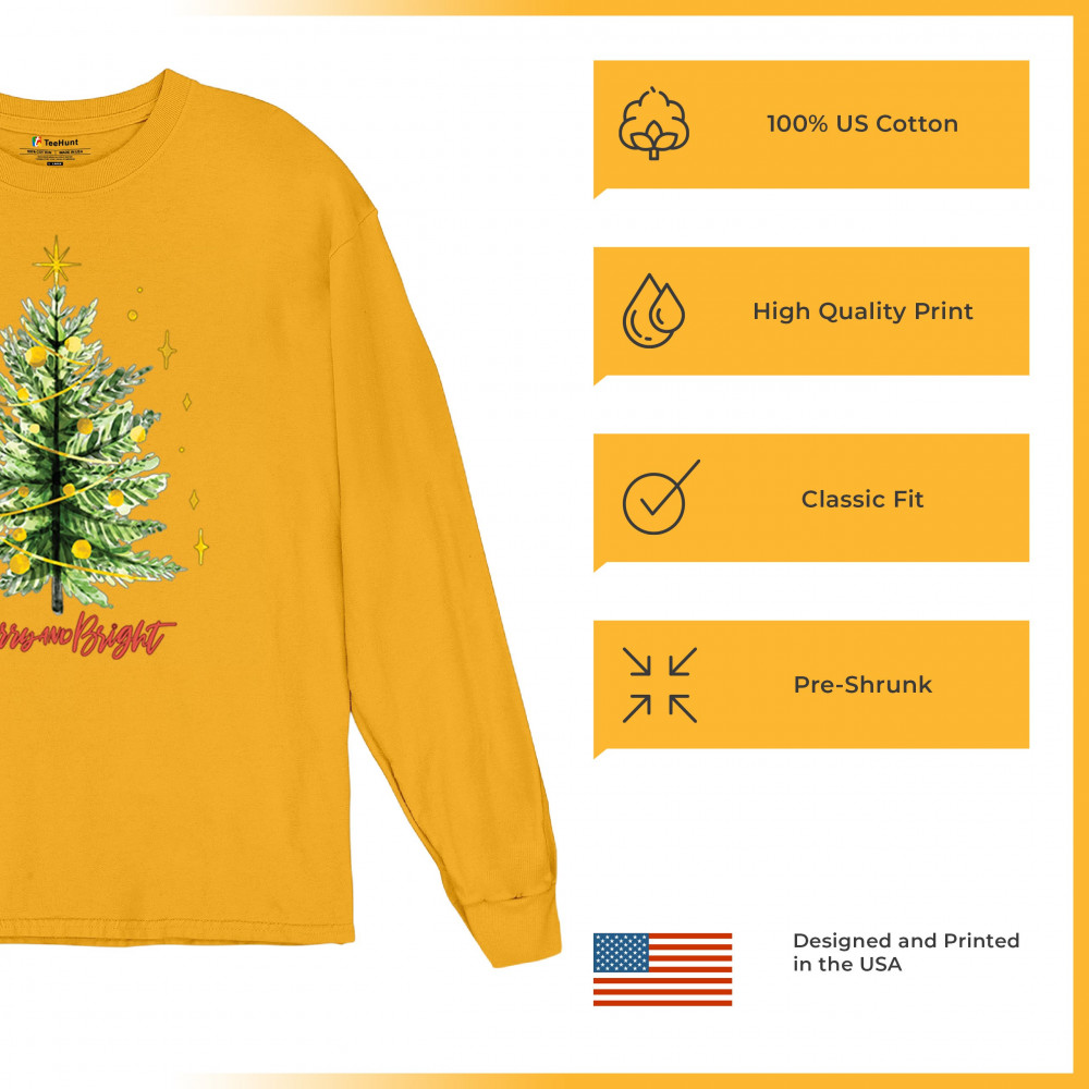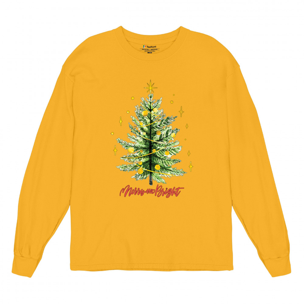 Festive “Merry and Bright†shirt featuring a joyful Christmas tree. Perfect for holiday gatherings, office parties, or Secret Santa gifts.