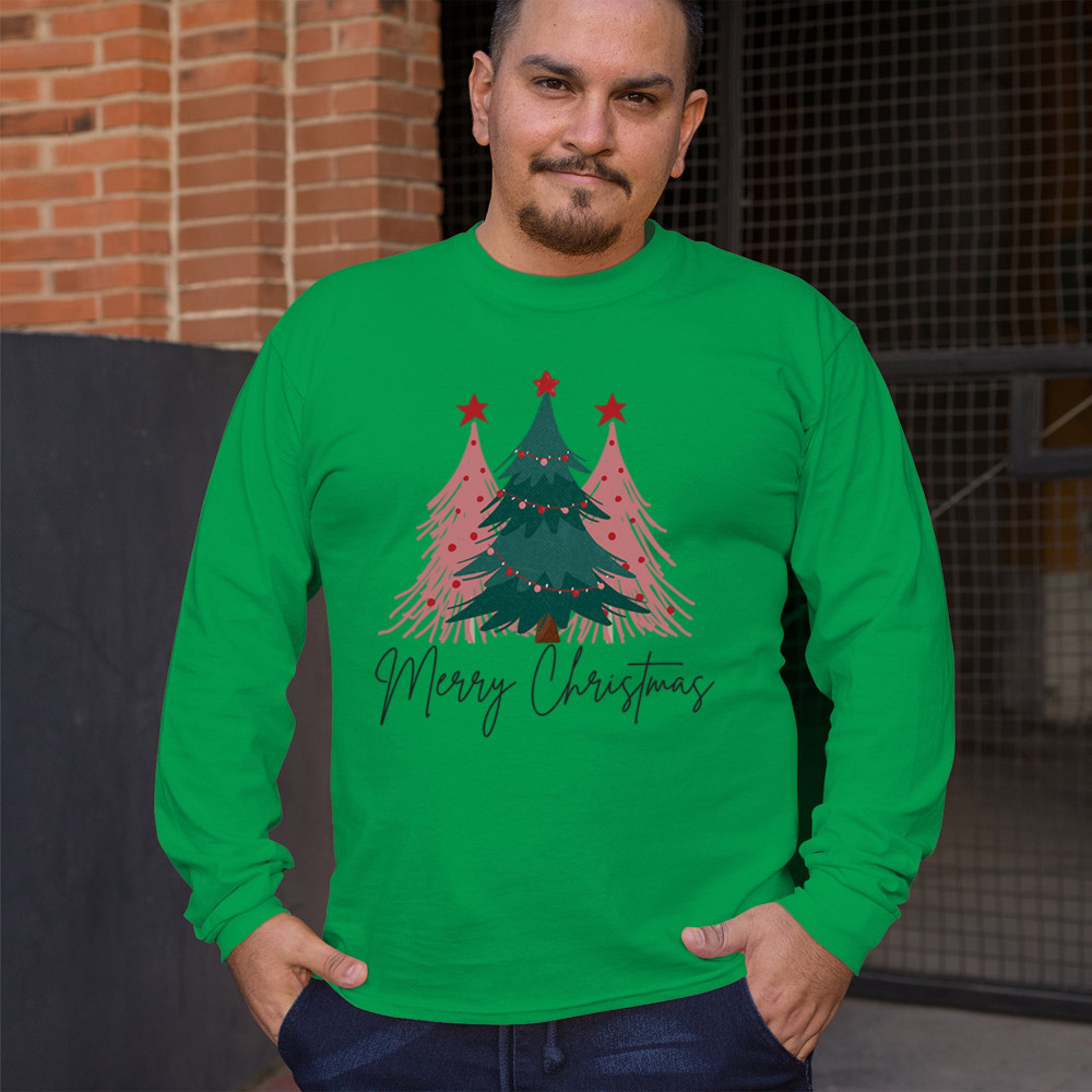 Festive pine tree design with lights, perfect for Christmas lovers, winter vibes, tree farm fans, and holiday gatherings.
