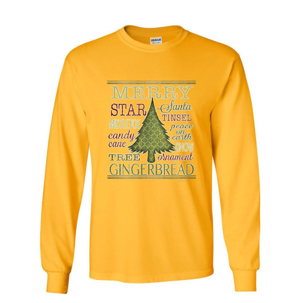 MERRY CHRISTMAS xmas tree long sleeve t-shirt holiday spirit joy santa snow tee yellow