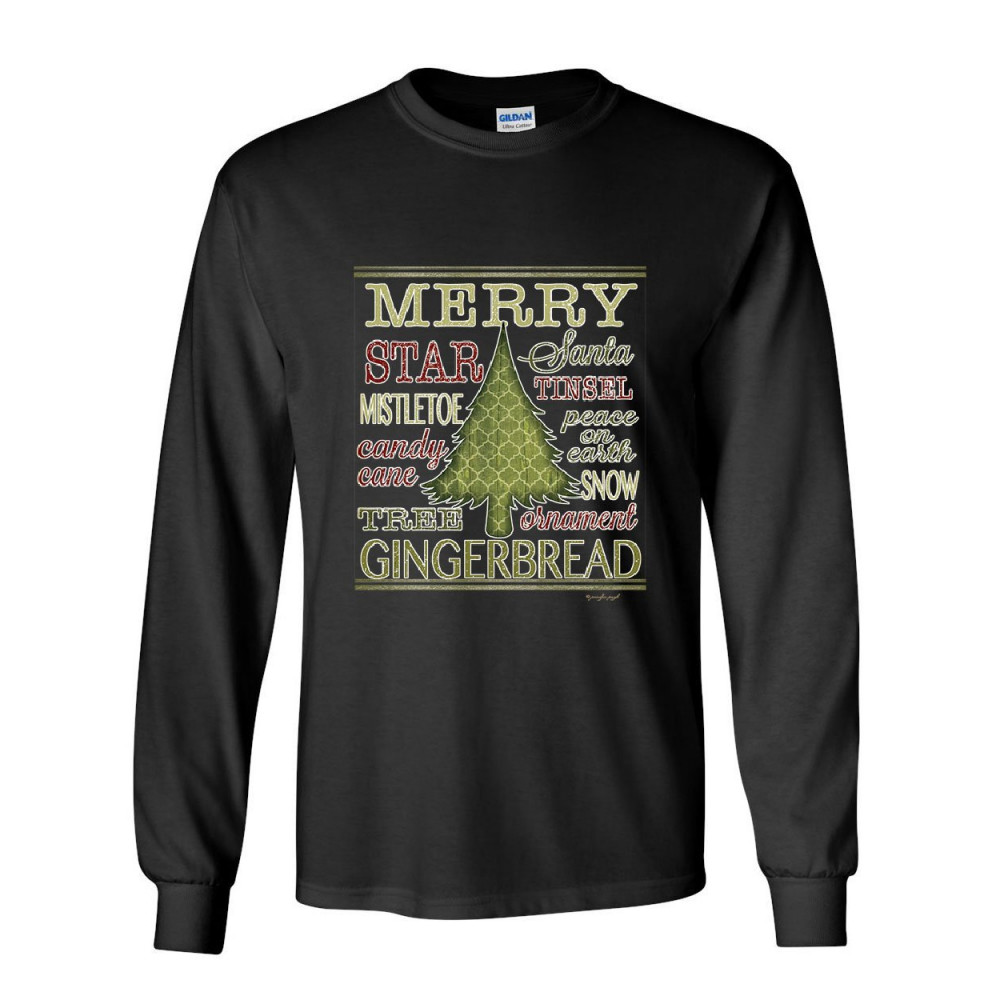 MERRY CHRISTMAS xmas tree long sleeve t-shirt holiday spirit joy santa snow tee black