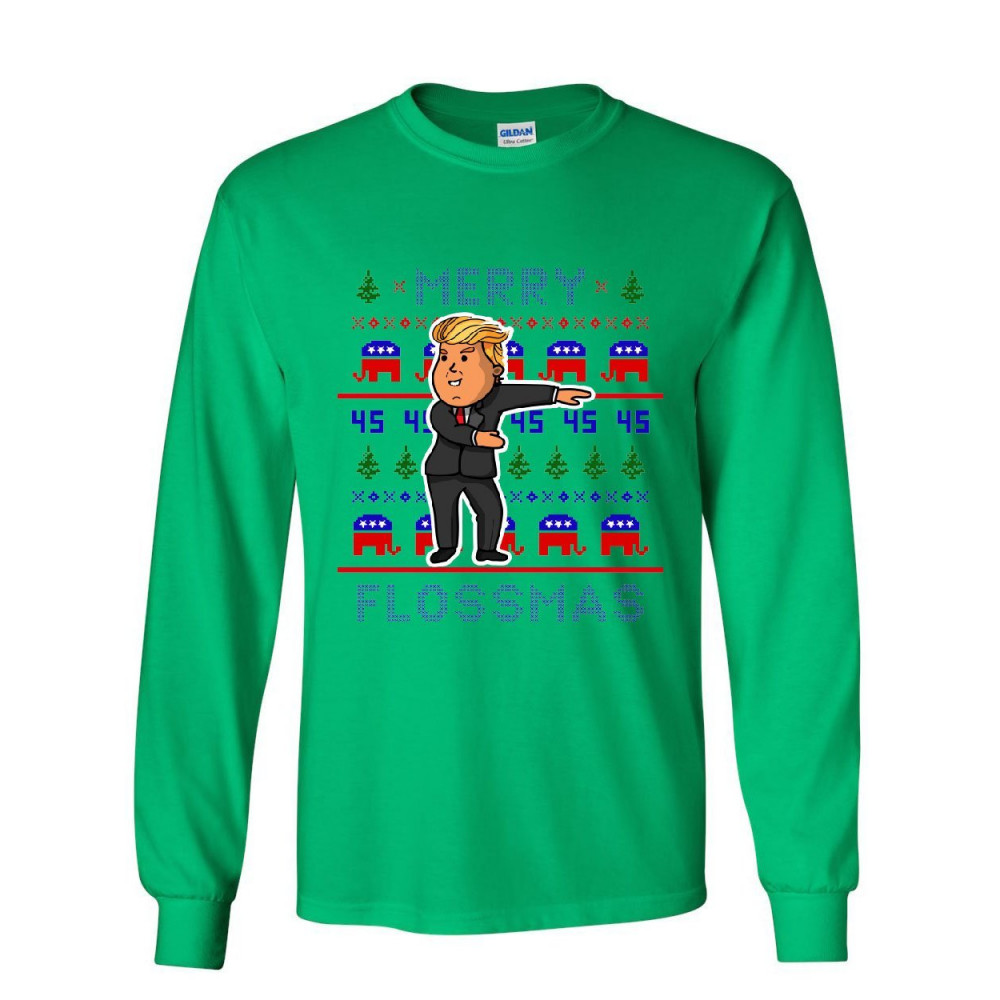 MERRY FLOSSMASS merry flossmas long sleeve t-shirt christmas xmas ugly sweater trump floss tee green