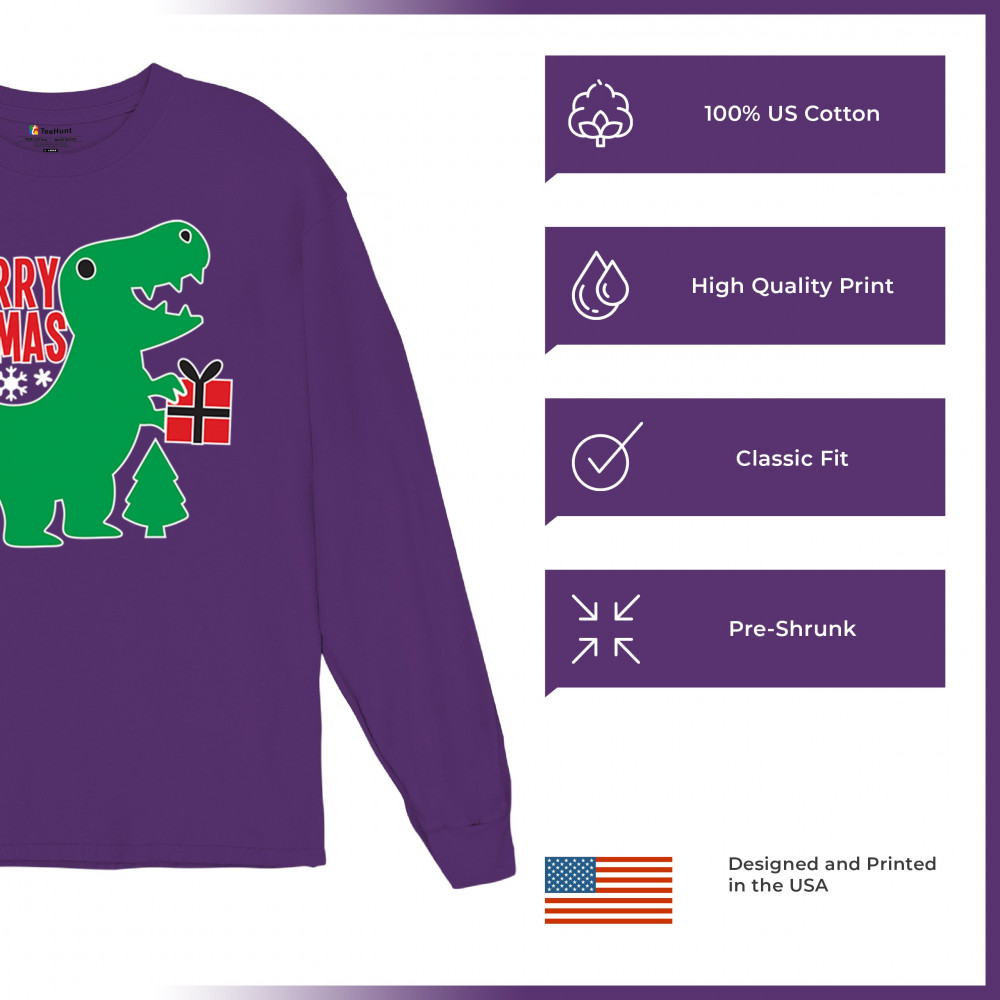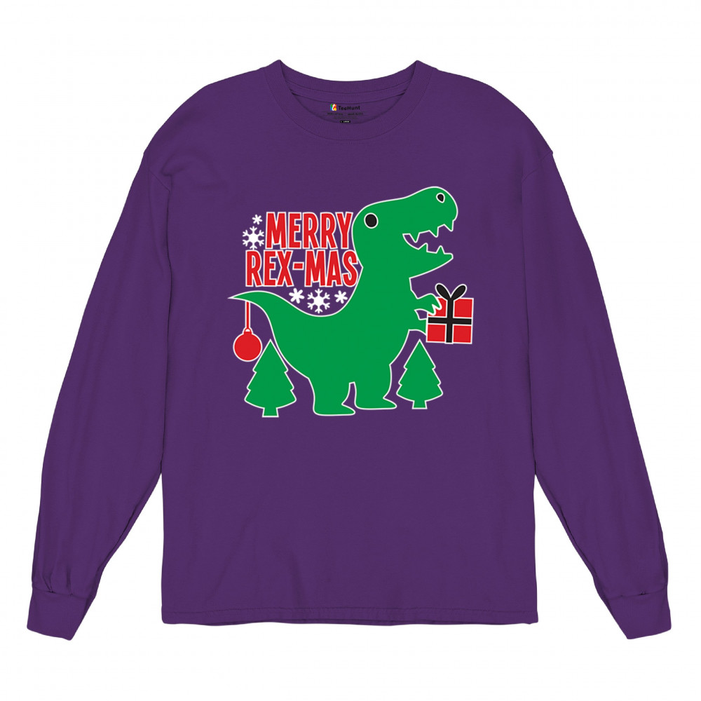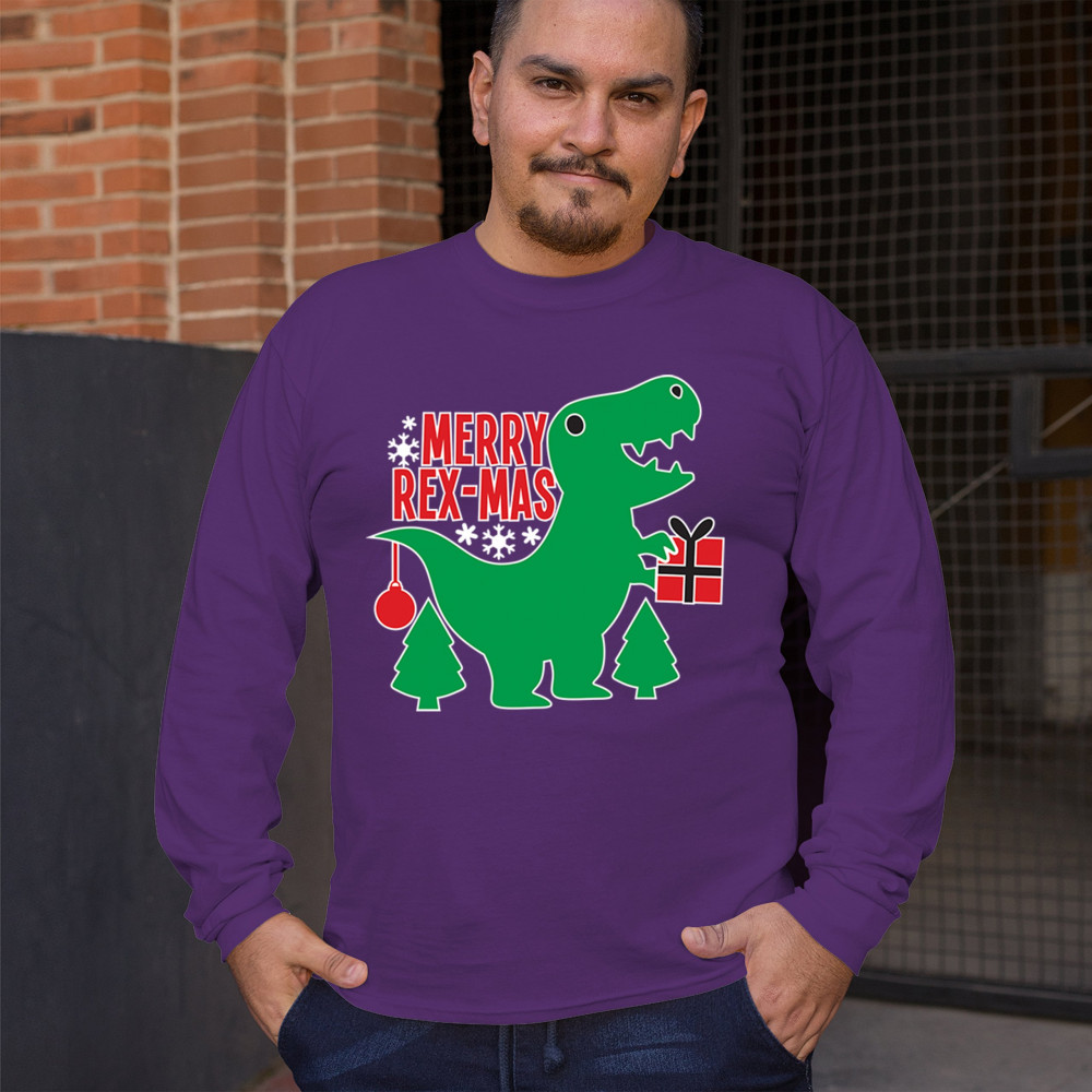 Merry Rex-Mas dinosaur Christmas design with a cute T-Rex, gift, and festive holiday details. Perfect for fun family celebrations and cheerful winter style.