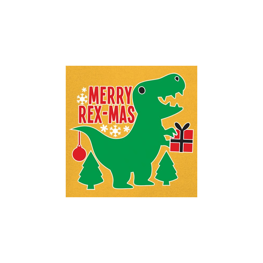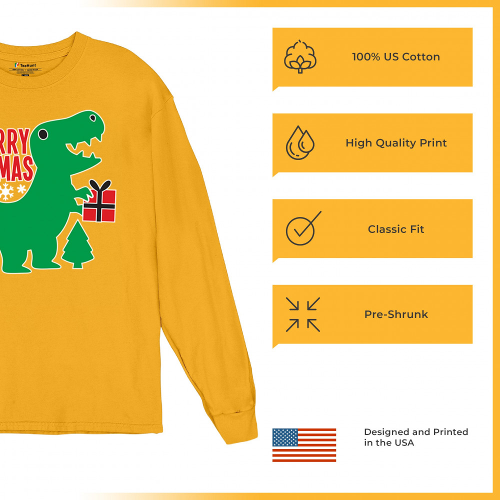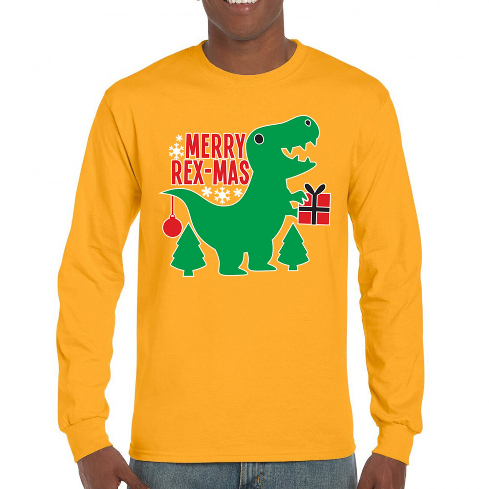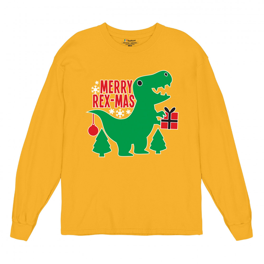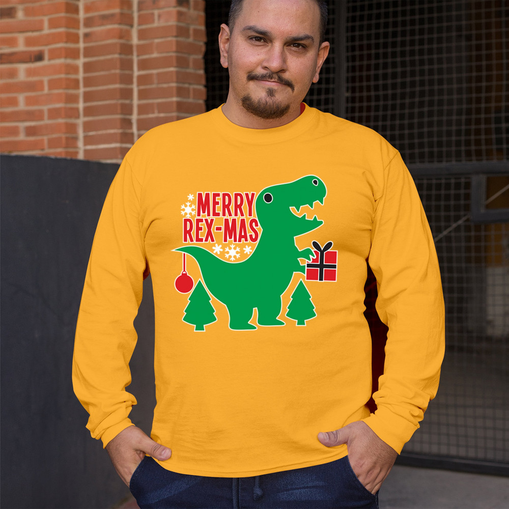 Merry Rex-Mas dinosaur Christmas design with a cute T-Rex, gift, and festive holiday details. Perfect for fun family celebrations and cheerful winter style.
