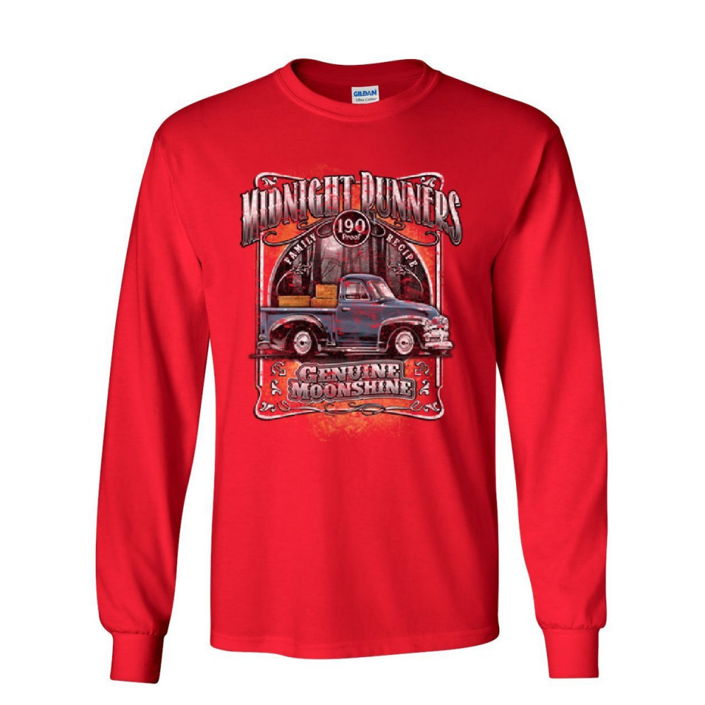 MIDNIGHT RUNNERS long sleeve t-shirt genuine moonshine drinking whisky booze tee red