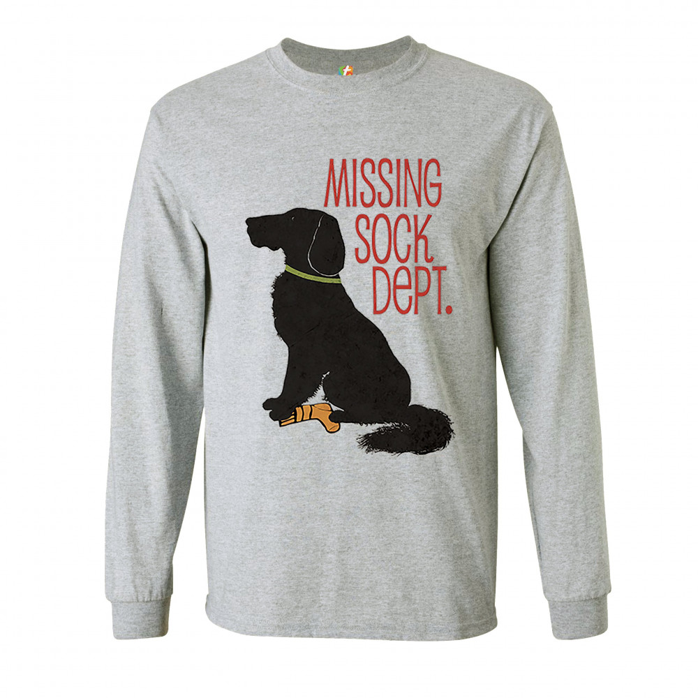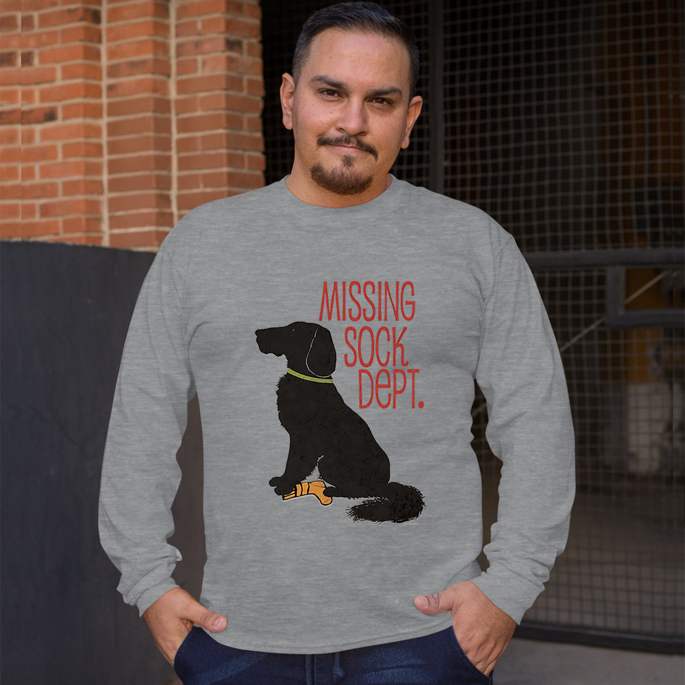 MISSING SOCK DEPT. long sleeve t-shirt flat-coated retriever i love my dog gray