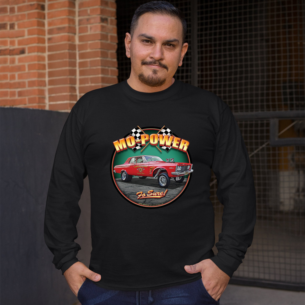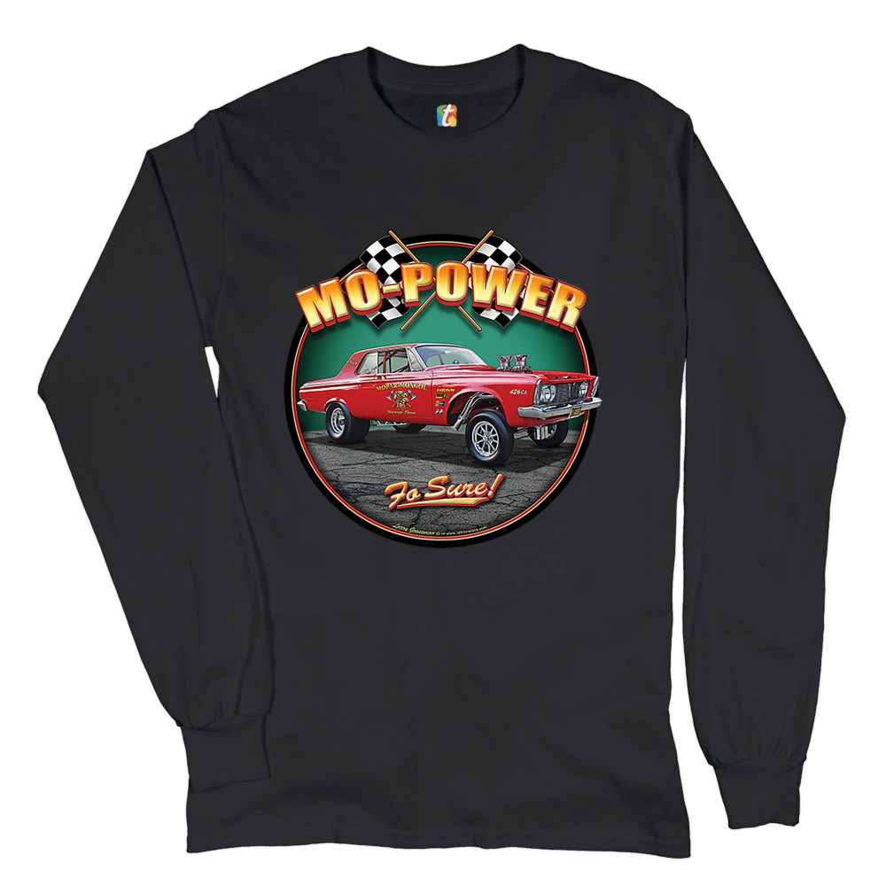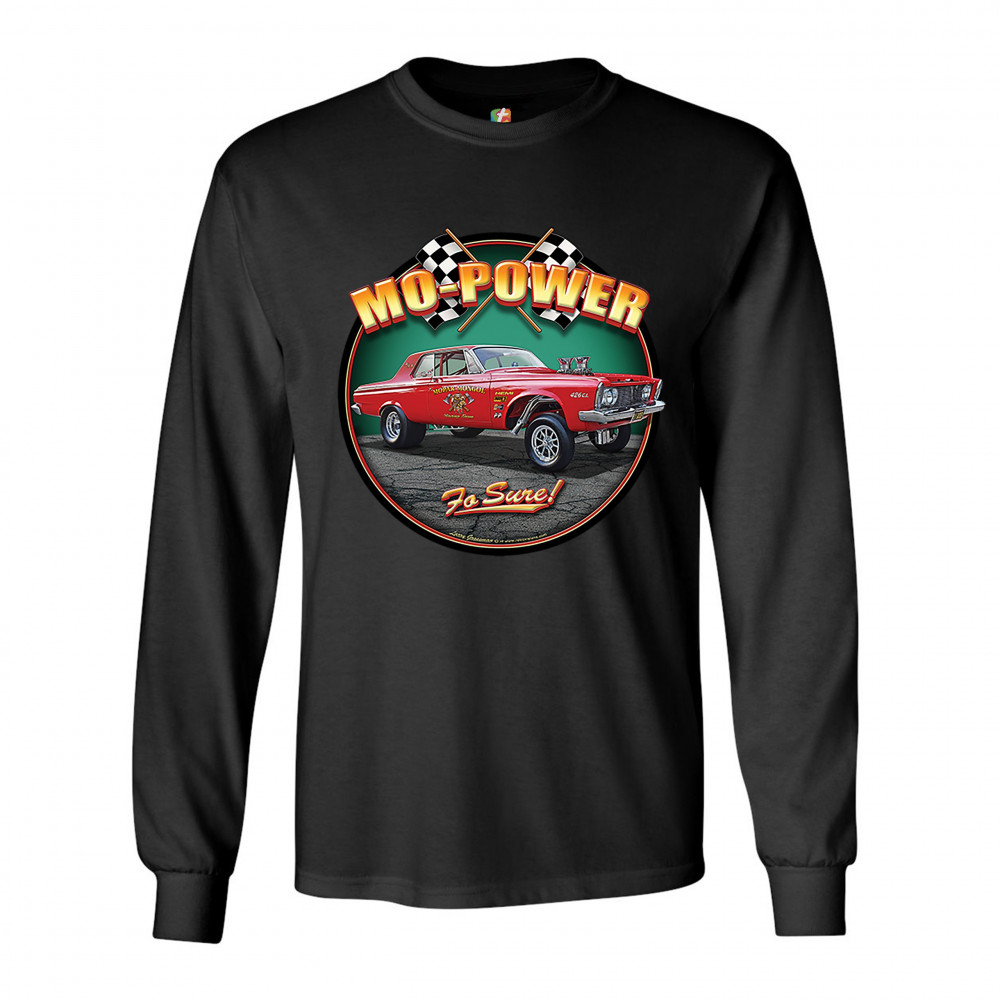 MO-POWER FO SURE! long sleeve t-shirt american muscle car racing route 66 black