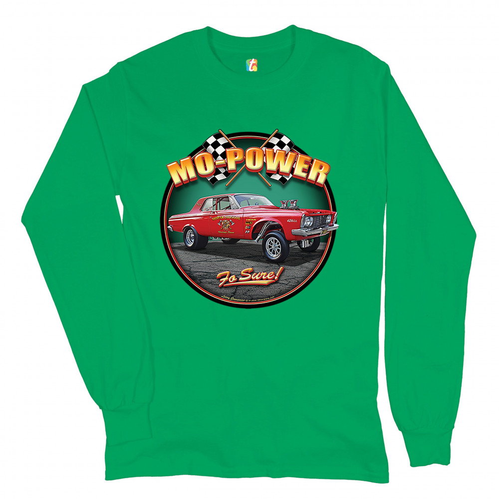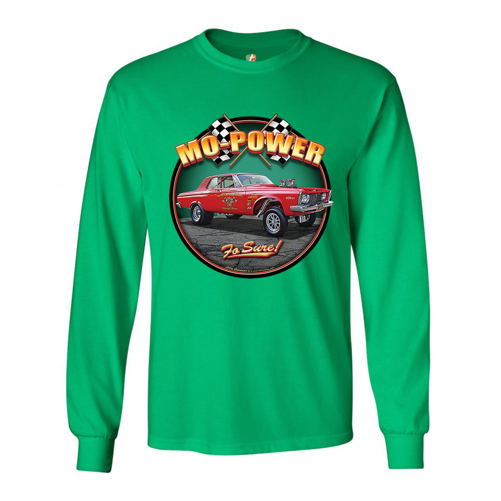 MO-POWER FO SURE! long sleeve t-shirt american muscle car racing route 66 green