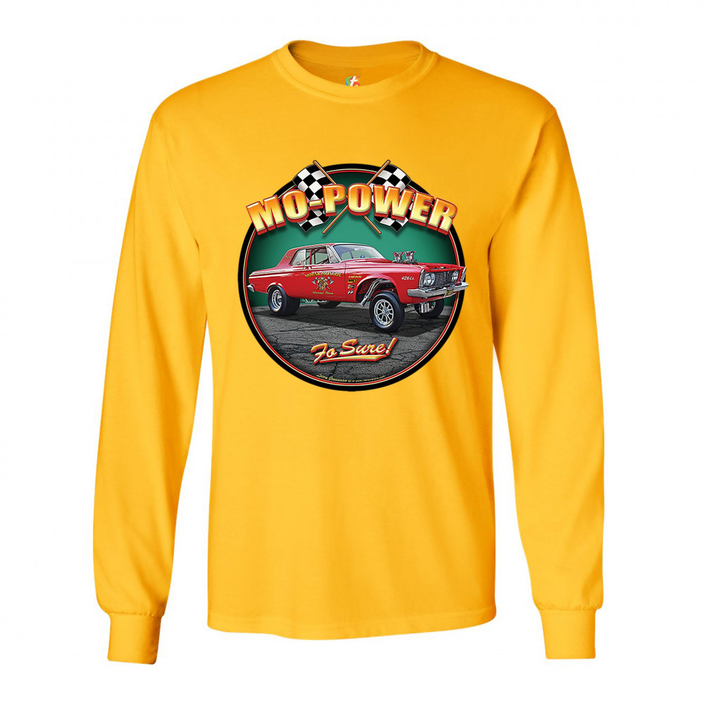 MO-POWER FO SURE! long sleeve t-shirt american muscle car racing route 66 yellow