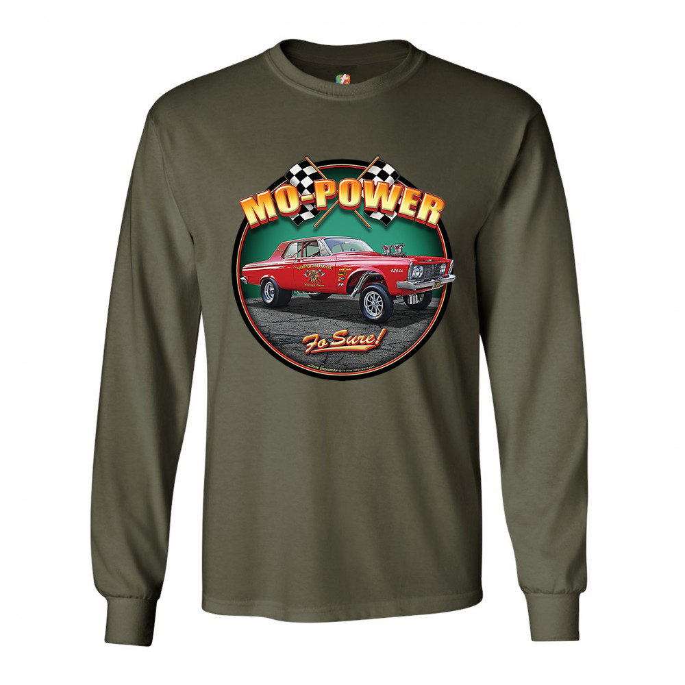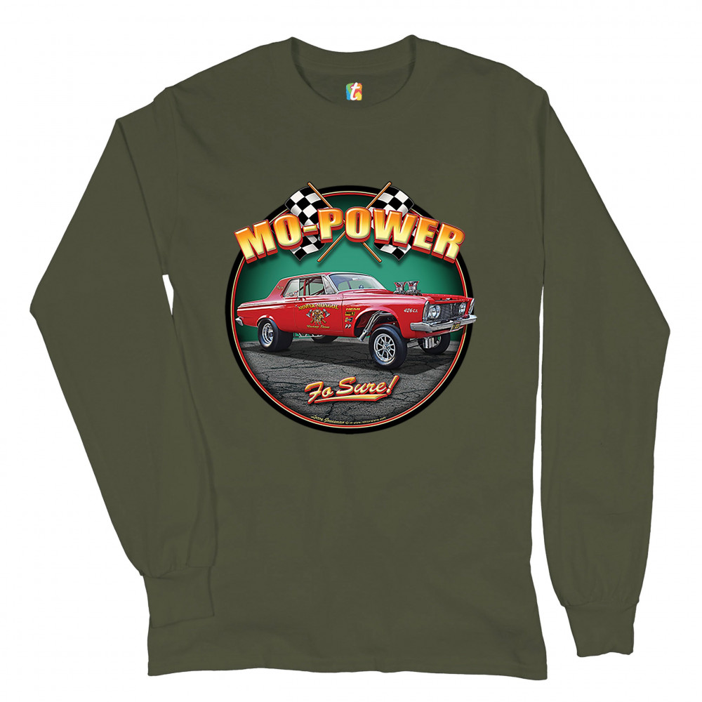 MO-POWER FO SURE! long sleeve t-shirt american muscle car racing route 66 military green