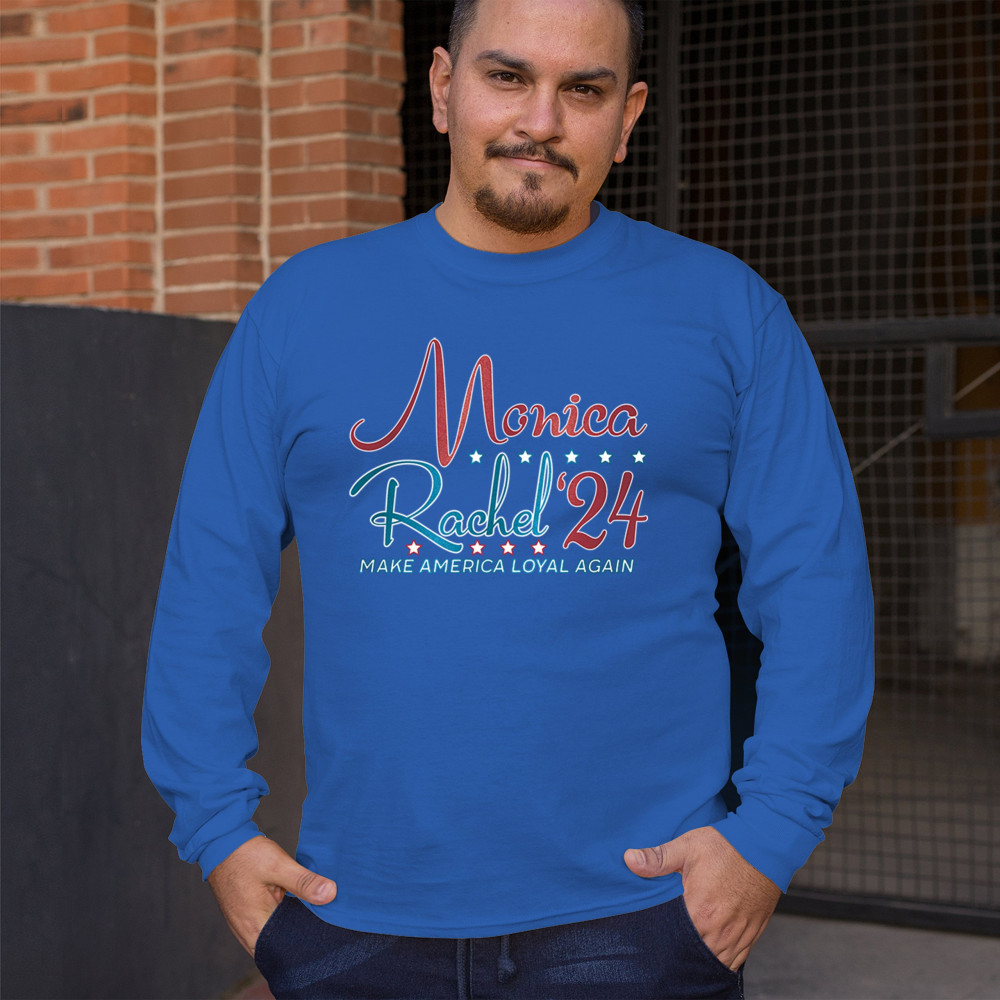 Get ready for the 2024 election with a humorous twist—Monica and Rachel '24! This fun design is perfect for "Friends" fans who love mixing pop culture with politics.