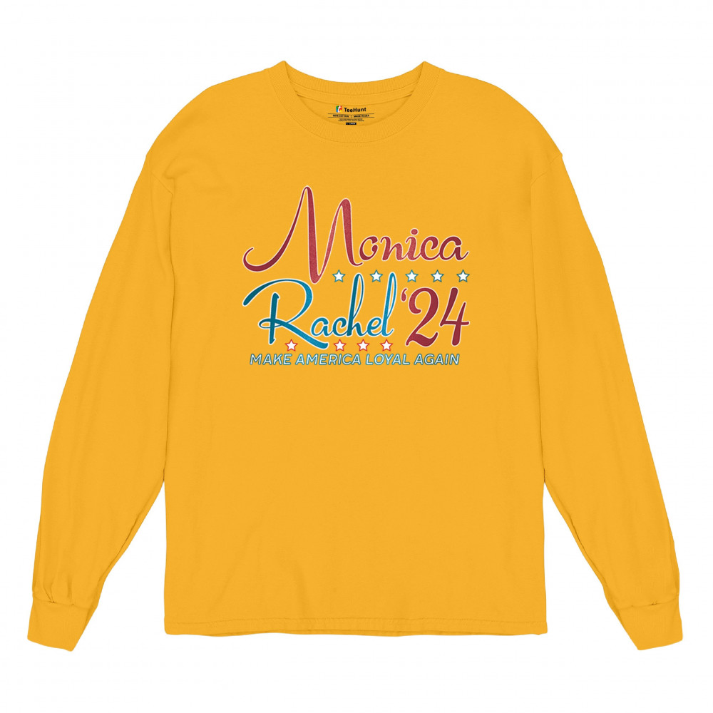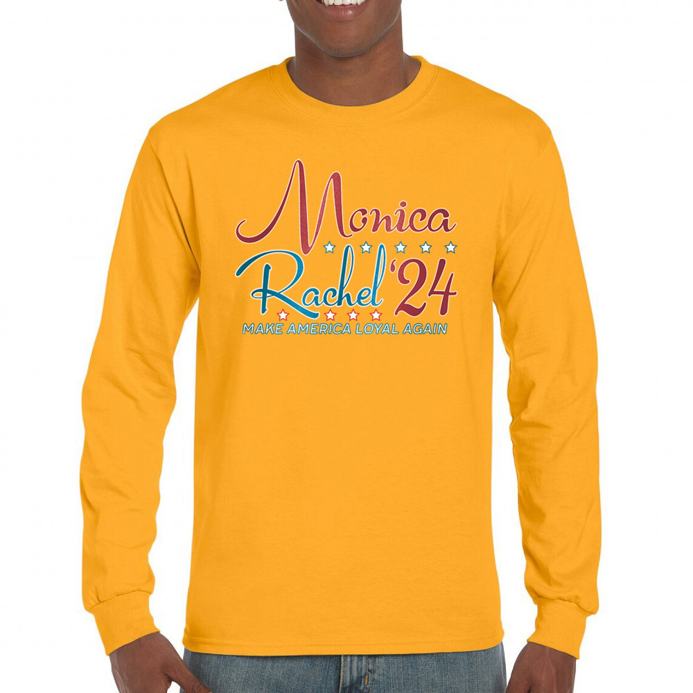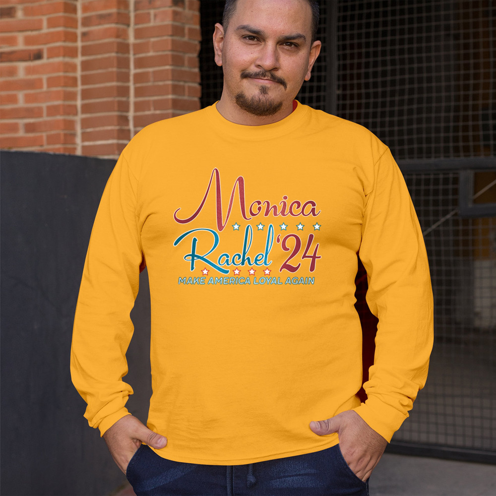 Get ready for the 2024 election with a humorous twist—Monica and Rachel '24! This fun design is perfect for "Friends" fans who love mixing pop culture with politics.