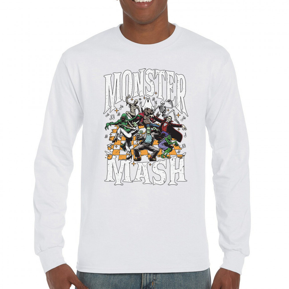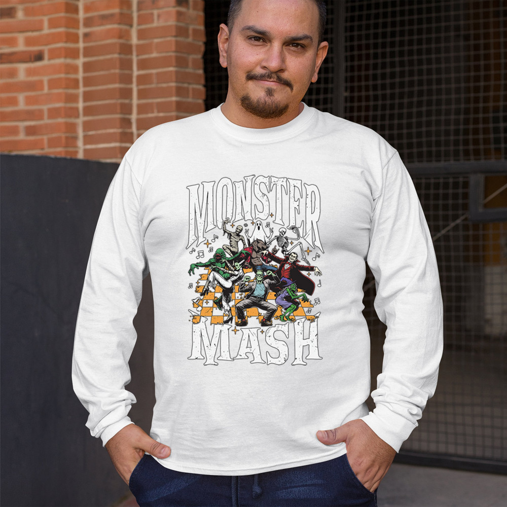 Monster Mash design with creepy costume, pumpkin head, and scary jack o lantern vibes. Perfect for Halloween night, October 31, and parties.