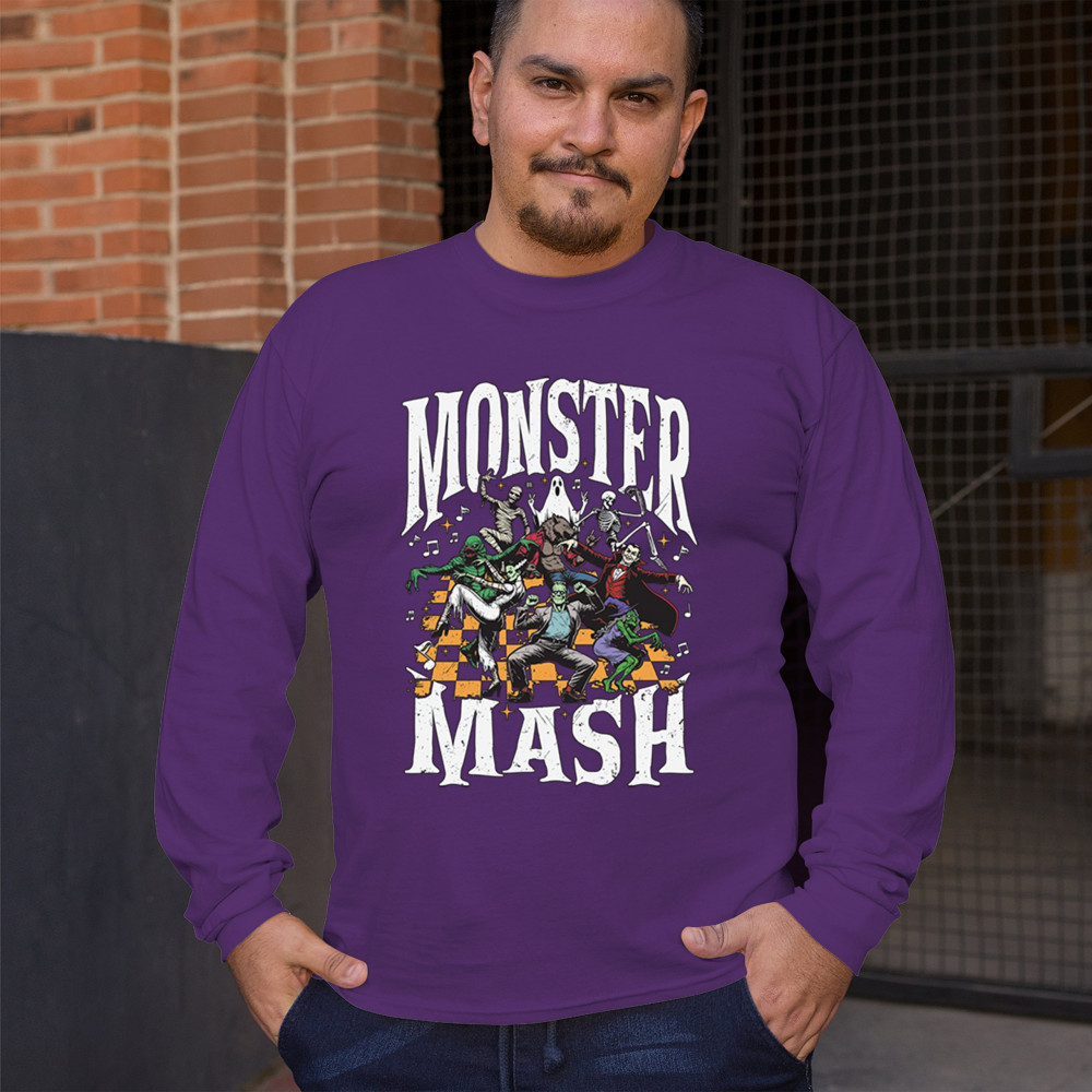 Monster Mash design with creepy costume, pumpkin head, and scary jack o lantern vibes. Perfect for Halloween night, October 31, and parties.