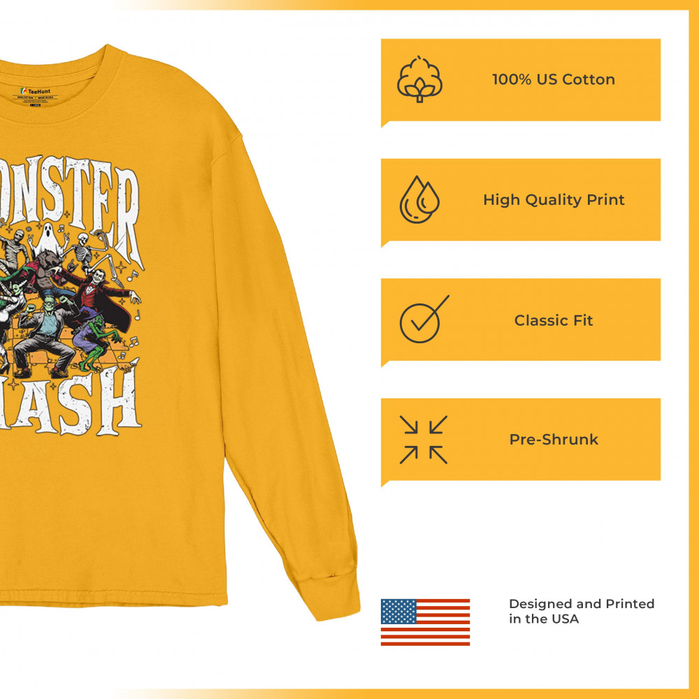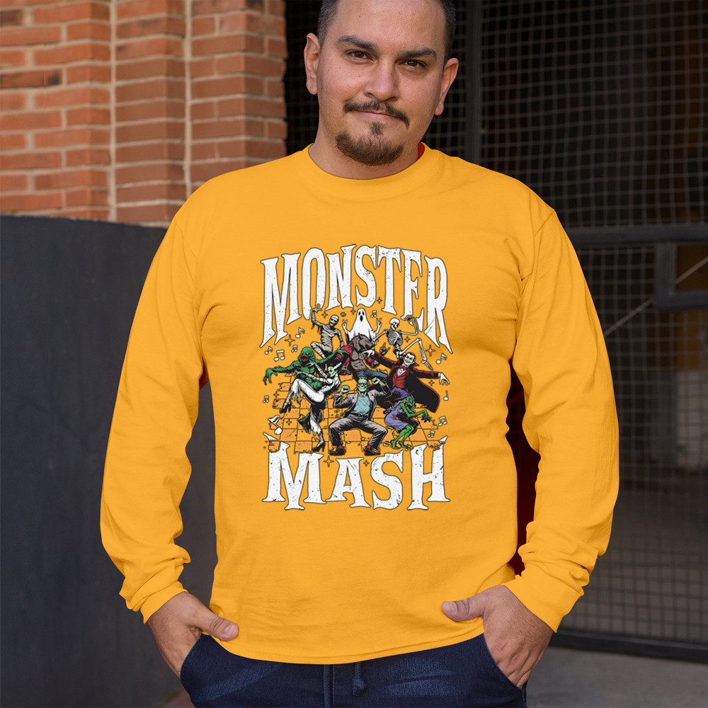 Monster Mash design with creepy costume, pumpkin head, and scary jack o lantern vibes. Perfect for Halloween night, October 31, and parties.