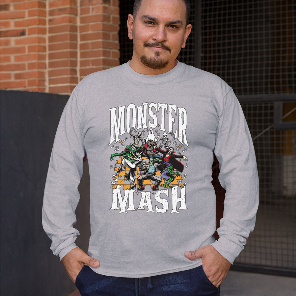 Monster Mash design with creepy costume, pumpkin head, and scary jack o lantern vibes. Perfect for Halloween night, October 31, and parties.