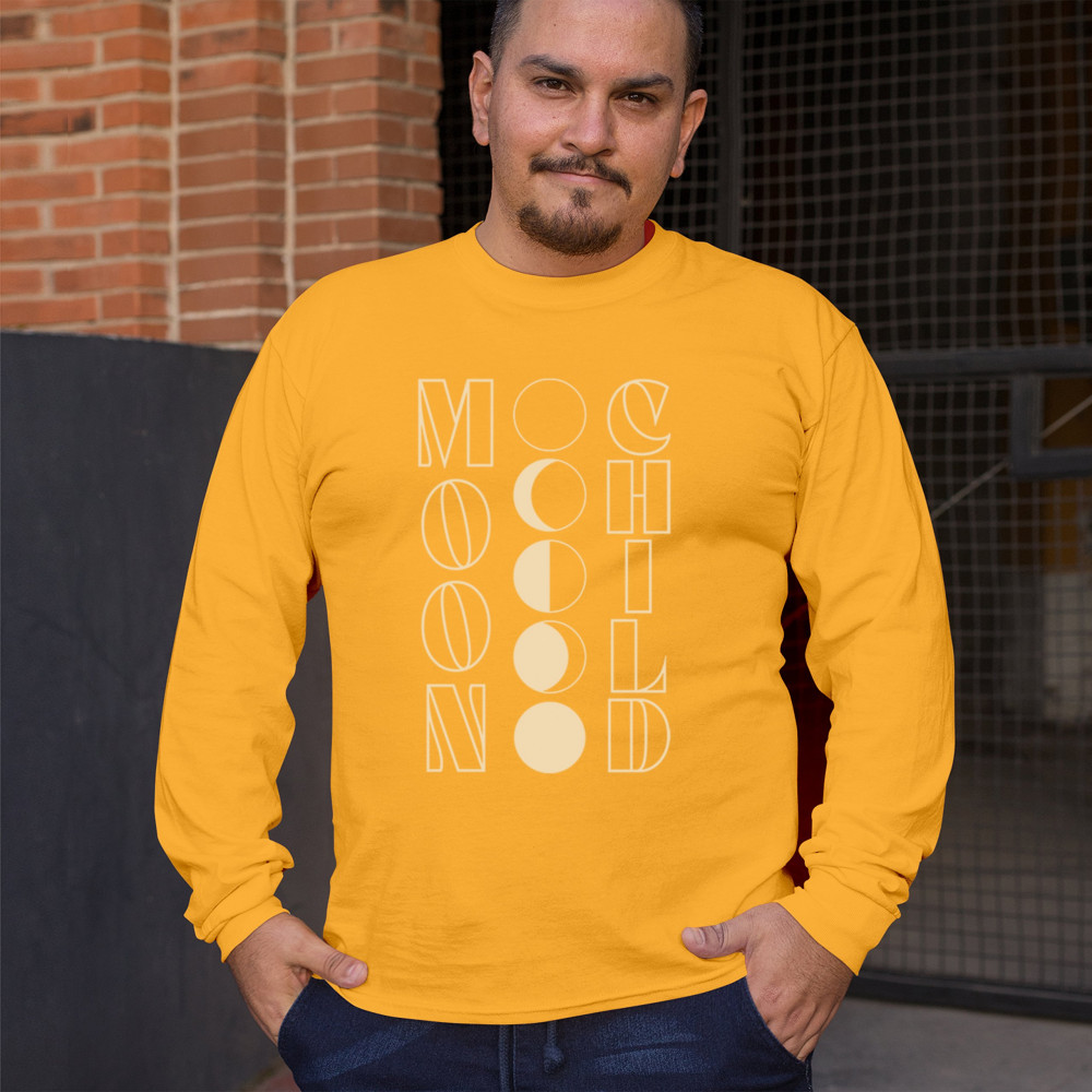 Explore the 'Moon Child' design, showcasing moon phases in minimalist style. Perfect for space lovers, it's a unique, comfortable piece ideal for any occasion.