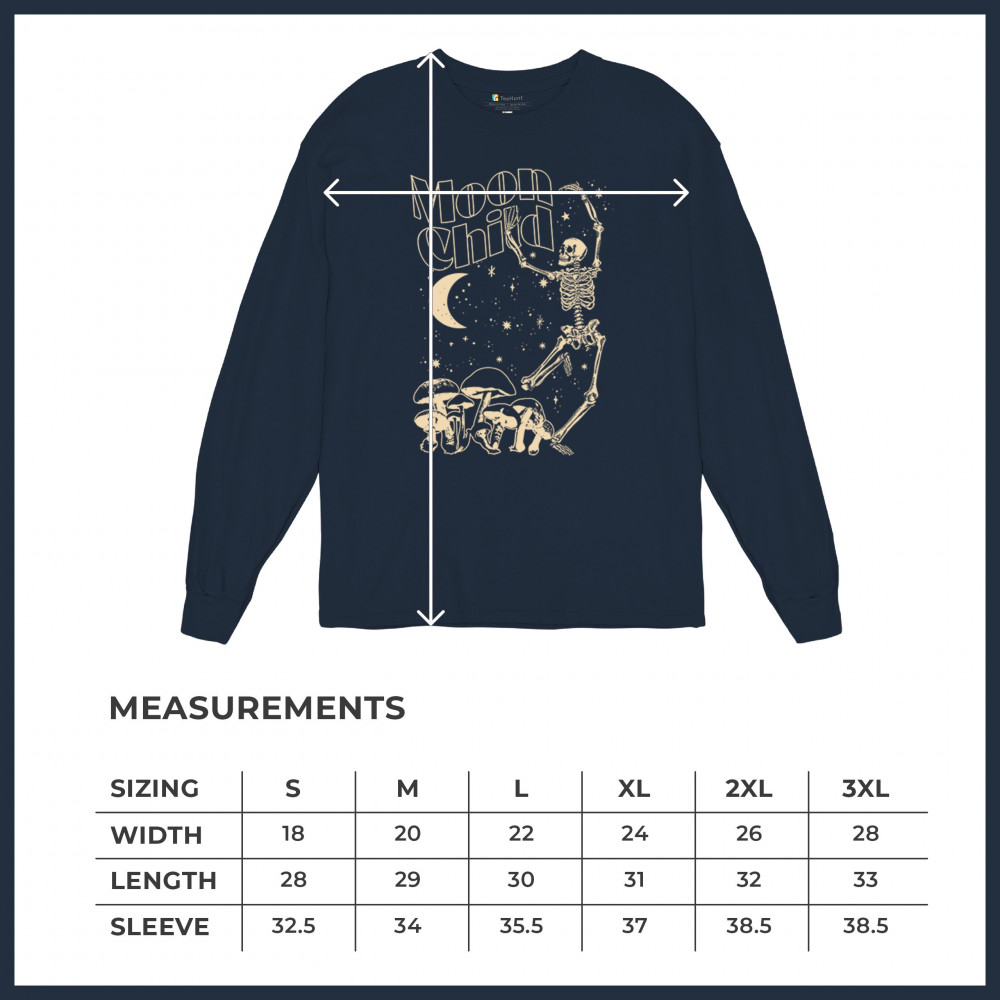 Step into cosmic wonder with this “Moon Child†design—featuring a skeleton in motion beneath a crescent moon, surrounded by stars and enchanted mushrooms. A perfect mix of gothic energy, lunar love, psychedelic art, and spiritual vibes. Ideal for festivals, vintage dreamers, or anyone guided by moonlight and magic.