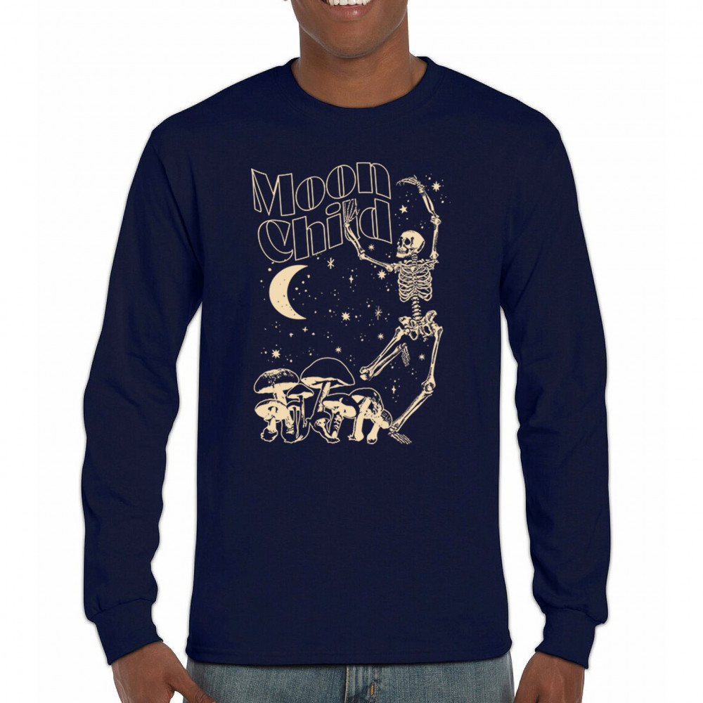 Mystical “Moon Child†design with skeleton, mushrooms, stars, and moon. Retro celestial vibes for dreamers, witches, and free spirits.