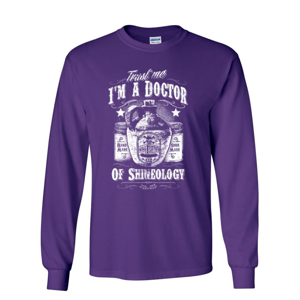 MOONSHINE DOCTOR long sleeve t-shirt shineology whisky liquor booze drinking tee purple