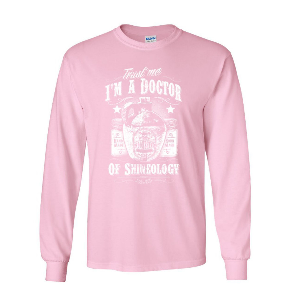 MOONSHINE DOCTOR long sleeve t-shirt shineology whisky liquor booze drinking tee light pink