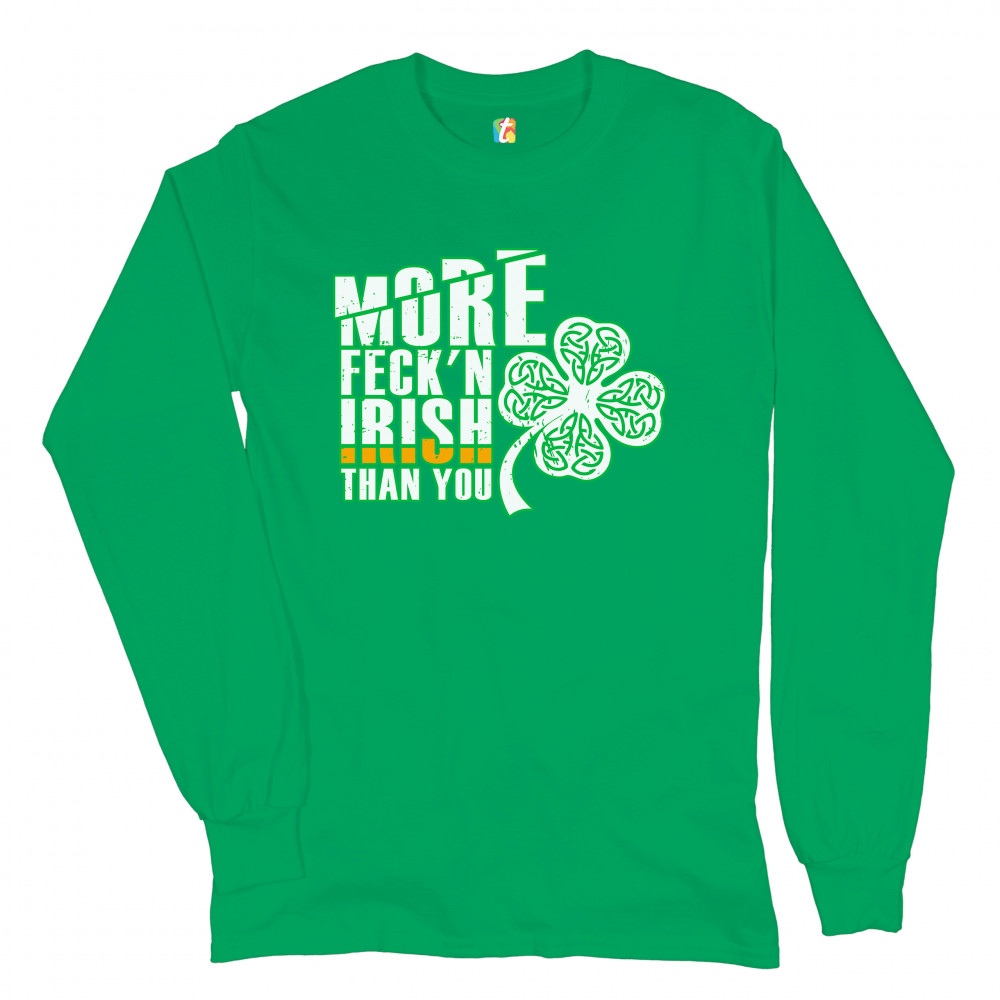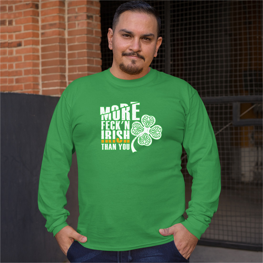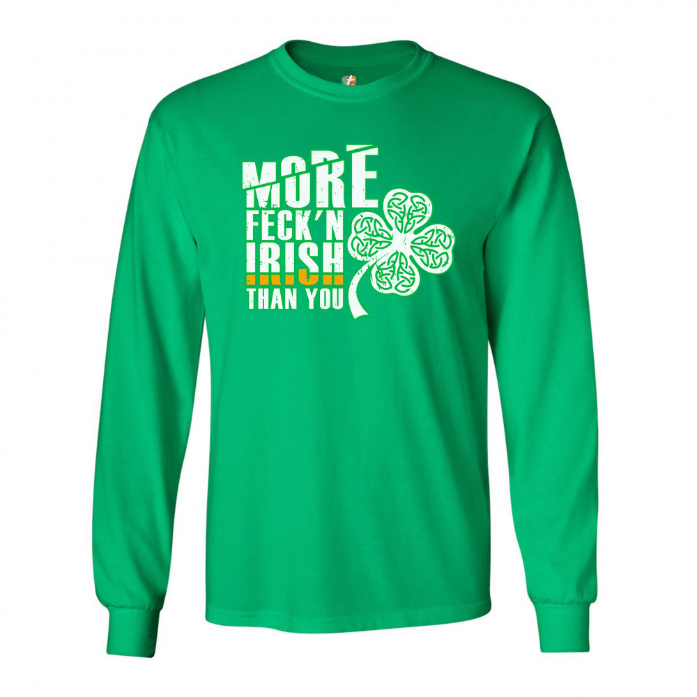 MORE FECK'N IRISH THAN YOU long sleeve t-shirt st. patrick's day shamrock green