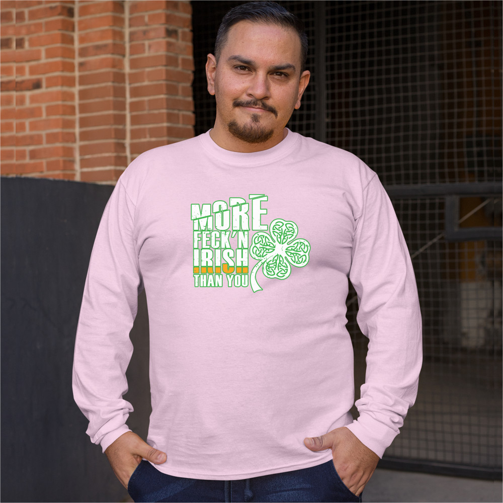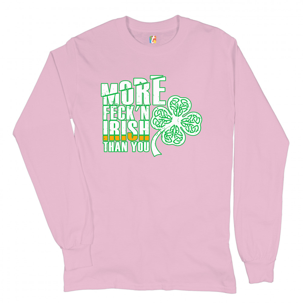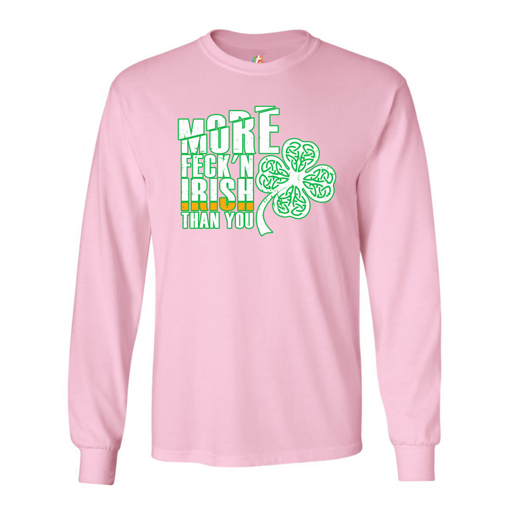 MORE FECK'N IRISH THAN YOU long sleeve t-shirt st. patrick's day shamrock light pink