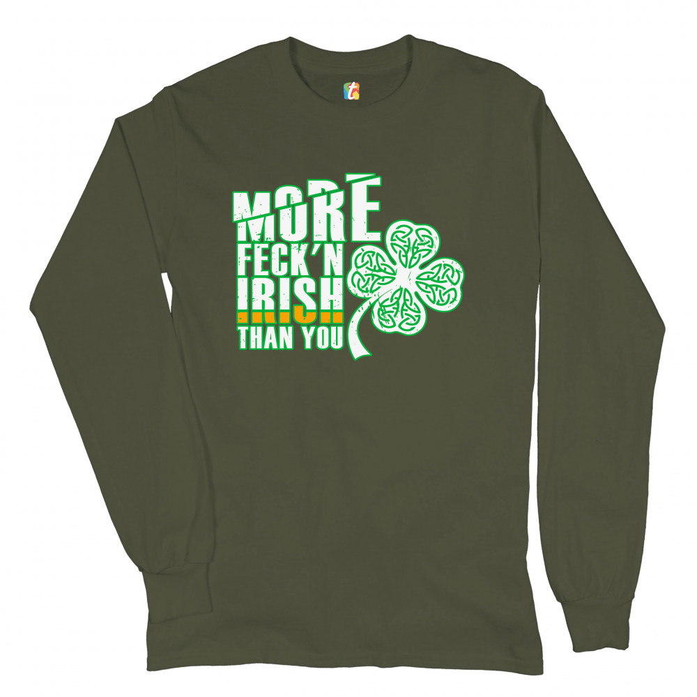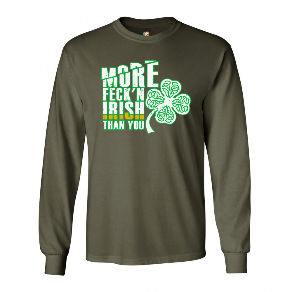 MORE FECK'N IRISH THAN YOU long sleeve t-shirt st. patrick's day shamrock military green