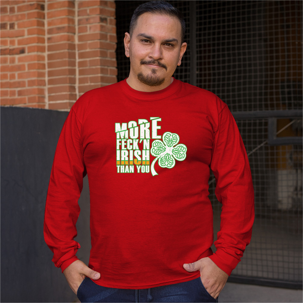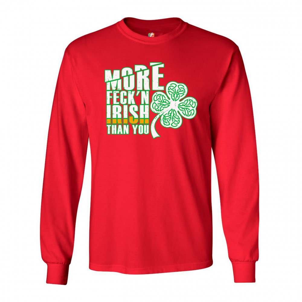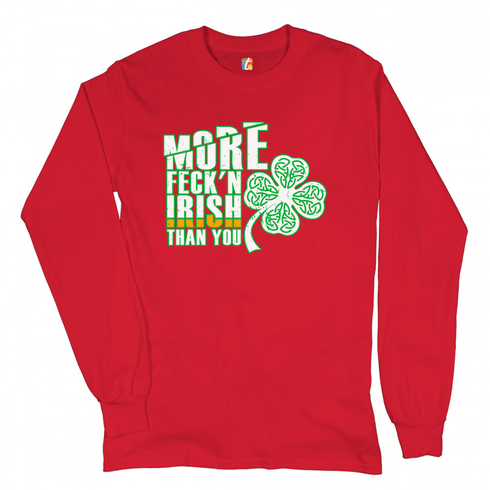 MORE FECK'N IRISH THAN YOU long sleeve t-shirt st. patrick's day shamrock red