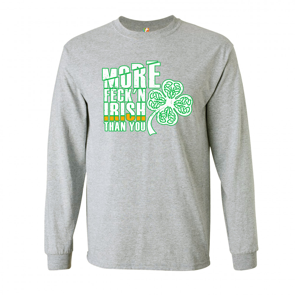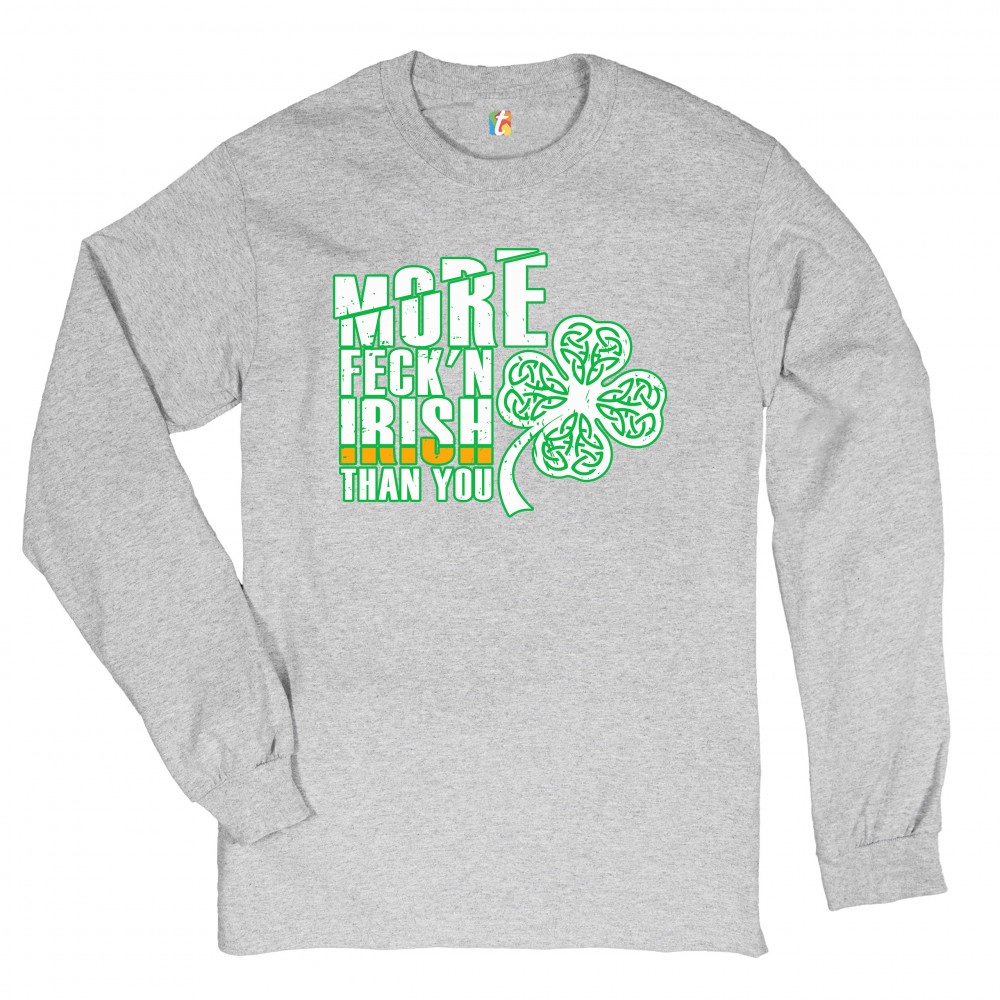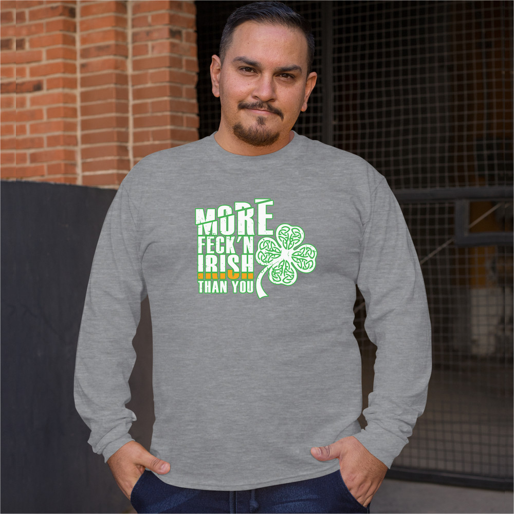 MORE FECK'N IRISH THAN YOU long sleeve t-shirt st. patrick's day shamrock gray