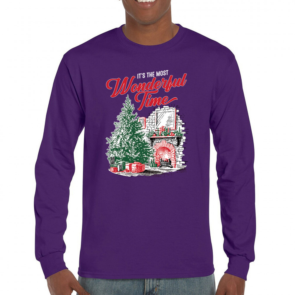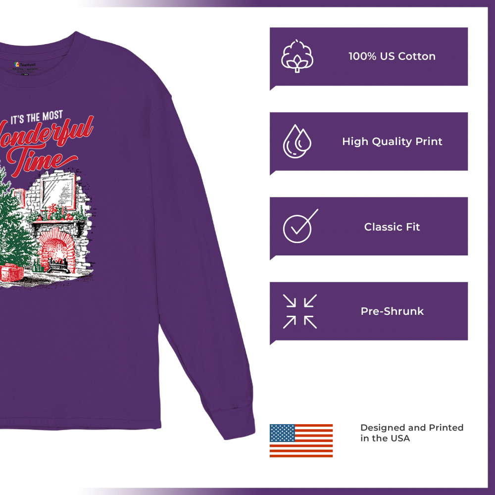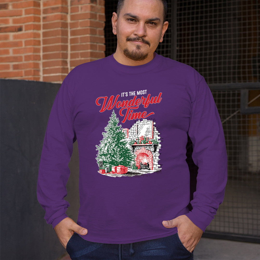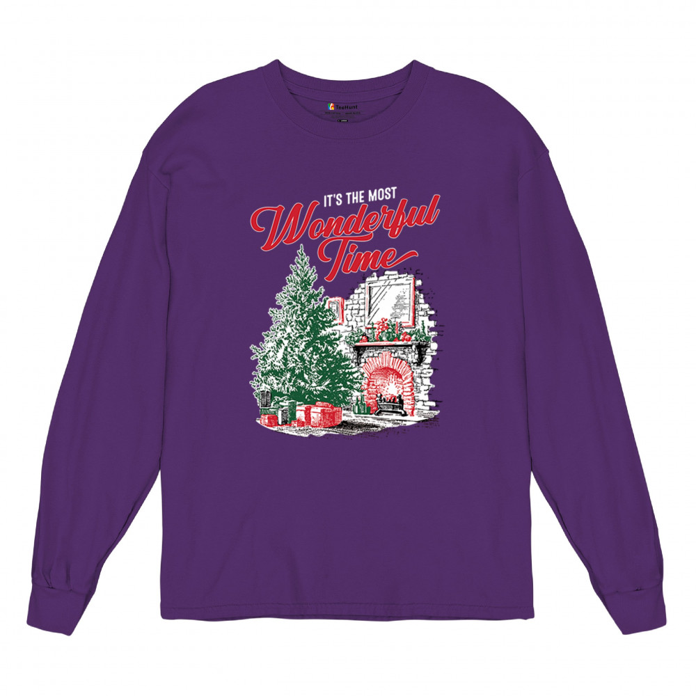 Make your holidays brighter with this “Most Wonderful Time†Christmas design, featuring a glowing fireplace, festive living room, and decorated Christmas tree. This cozy Christmas shirt combines holiday home decor style with classic Merry Xmas charm. Perfect for those who love Santa Claus, Rudolph, reindeer, Let It Snow vibes, and cheerful holiday fashion.
