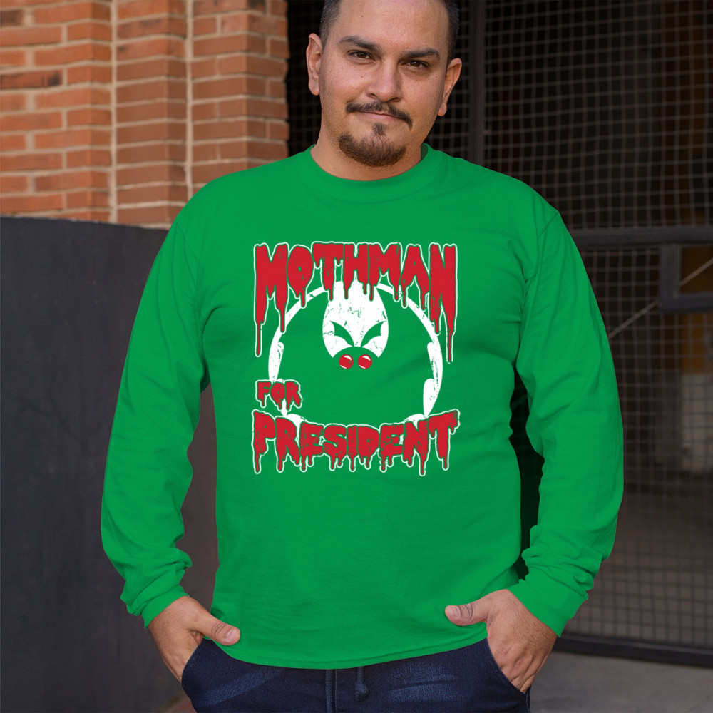 Get the "Mothman for President" shirt, blending political satire with cryptid humor. Perfect for fans of Mothman and political comedy. Durable and comfy!