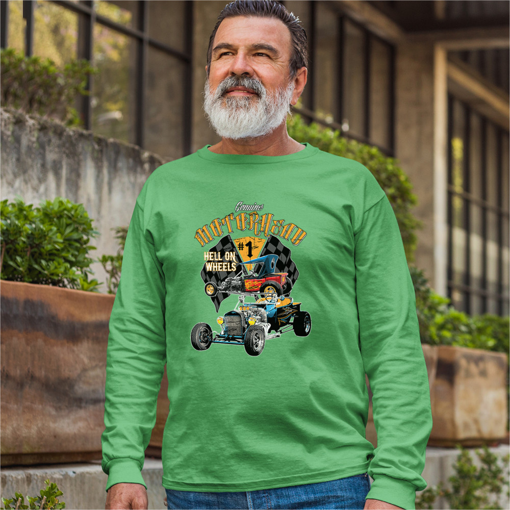 MOTORHEAD HOT ROD long sleeve t-shirt hell on wheels route 66 drag racing green