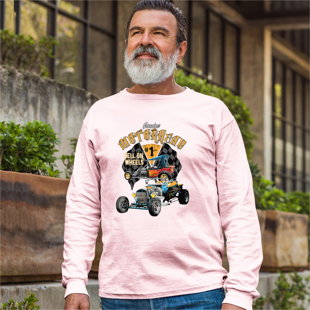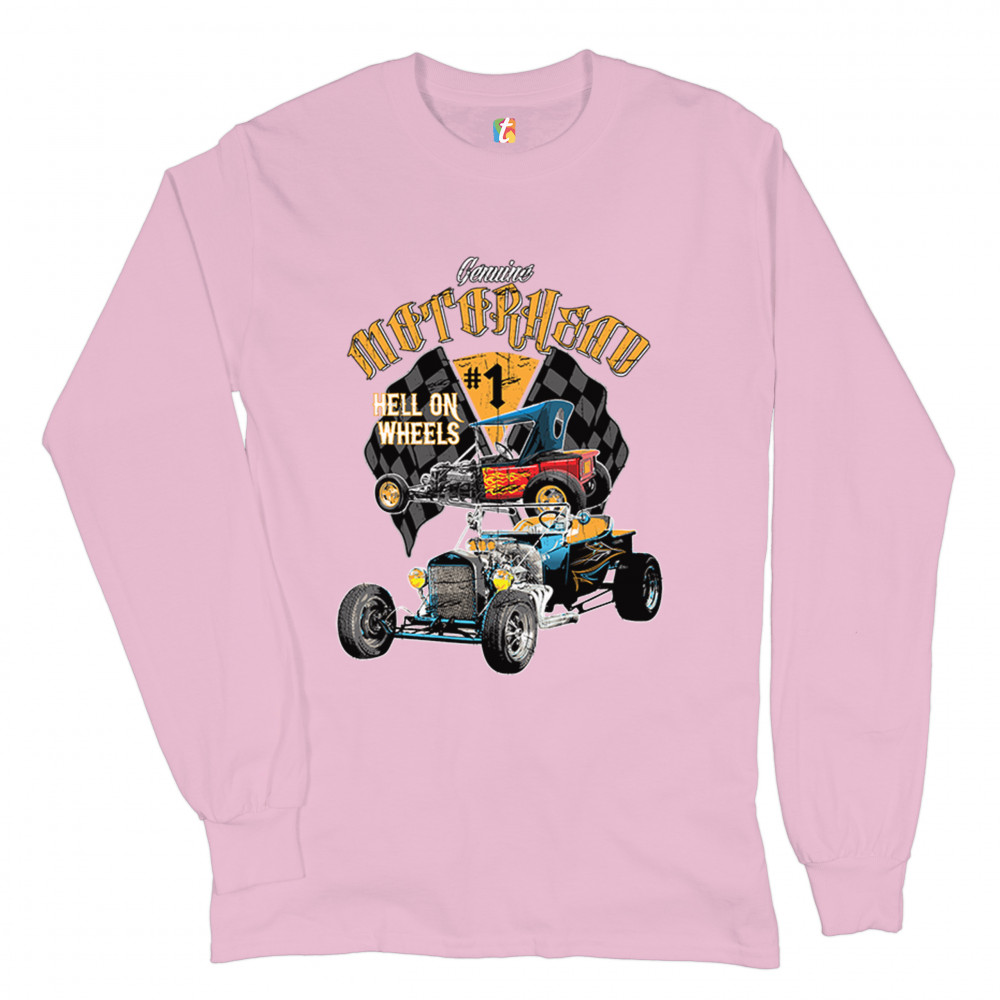MOTORHEAD HOT ROD long sleeve t-shirt hell on wheels route 66 drag racing light pink