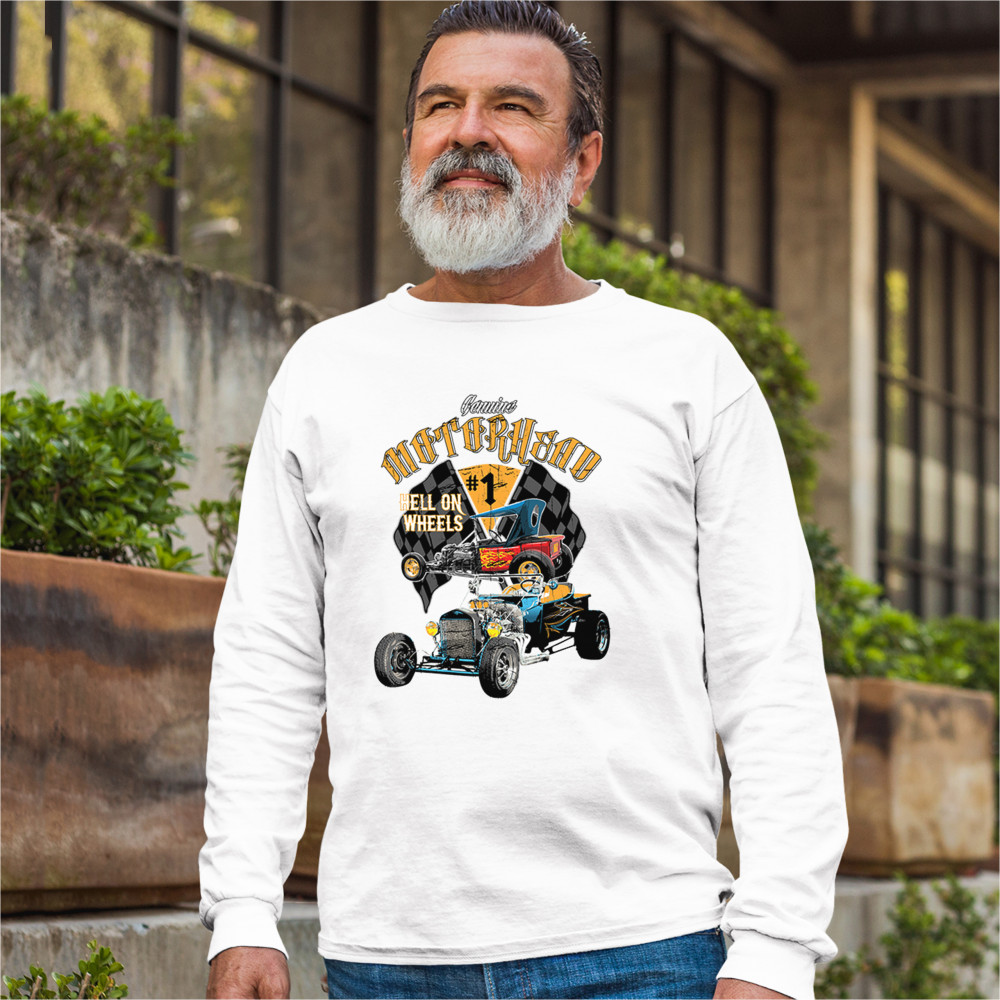 MOTORHEAD HOT ROD long sleeve t-shirt hell on wheels route 66 drag racing white