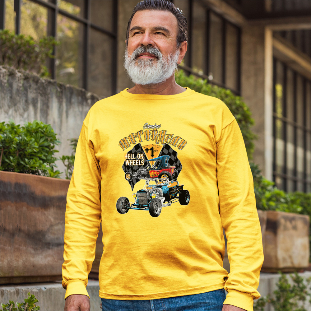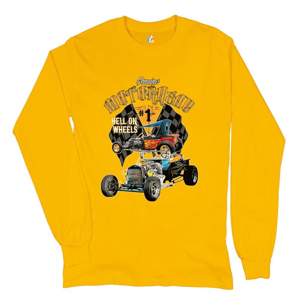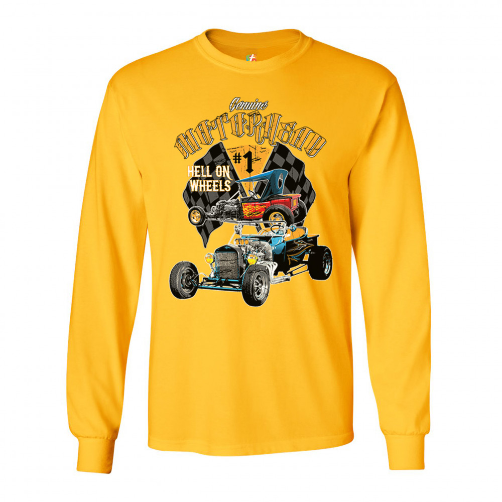 MOTORHEAD HOT ROD long sleeve t-shirt hell on wheels route 66 drag racing yellow