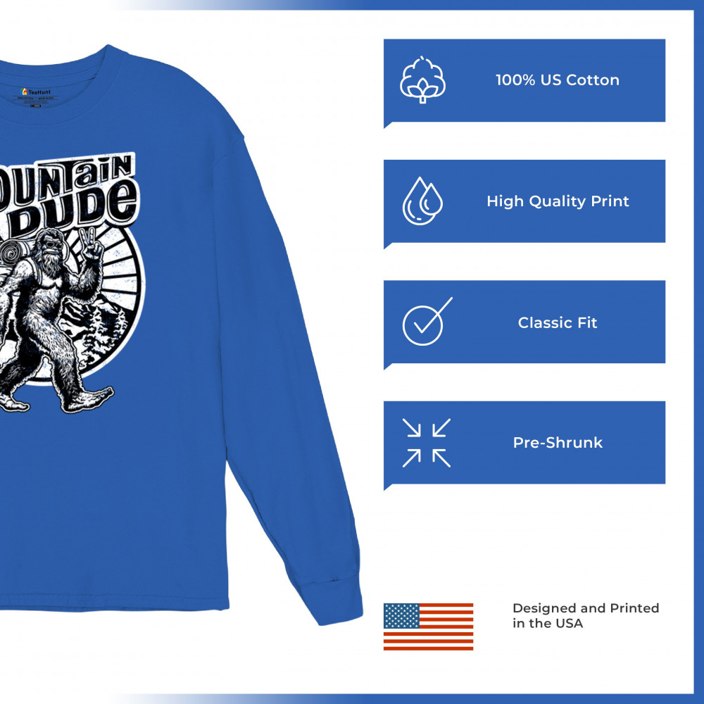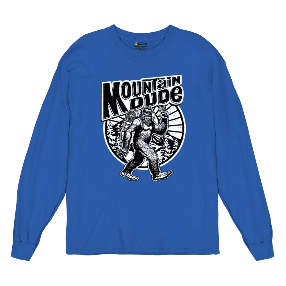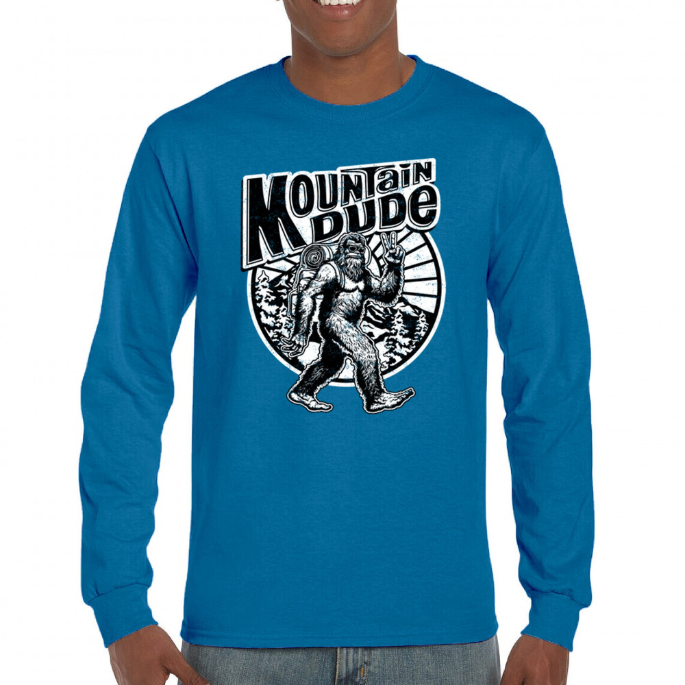 Celebrate outdoor adventures with the "Mountain Dude" design, featuring Sasquatch and mountain scenery. Perfect for hikers, campers, and Bigfoot fans.