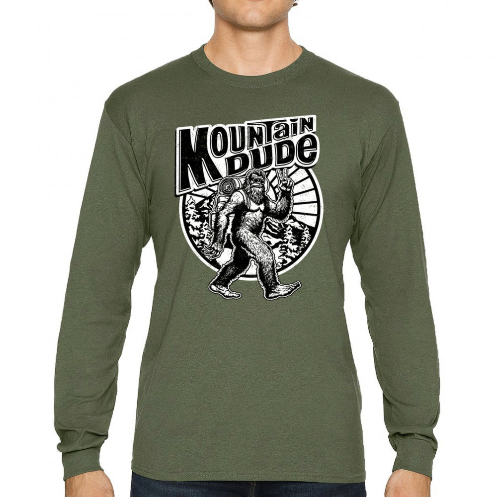 Celebrate outdoor adventures with the "Mountain Dude" design, featuring Sasquatch and mountain scenery. Perfect for hikers, campers, and Bigfoot fans.